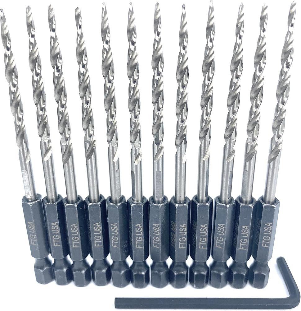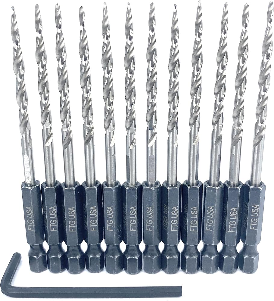 • مجموعة مثقاب غاطسة للخشب مع مثقاب مدبب، 4 قطع غاطسة فلوت #45 من الفولاذ الكربوني، مجموعة مثقاب مدببة تحتوي على 3 قطع مثقاب جميع لقم الثقب بنفس الحجم مع غاطسة #6 (9/64 بوصة) حوض خشبي قابل للتعديل، 1 مفتاح ربط سداسي (1/8" مفتاح ألين). كاونتر بور، وسدادات خشبية مقاس 3/8 بوصة. ساق سداسية متوافقة مع ظرف التغيير السريع القياسي مقاس 1/4 بوصة بما في ذلك المثاقب الصدمية. مجموعة رؤوس مثقاب FTG 2327 ساق سداسية