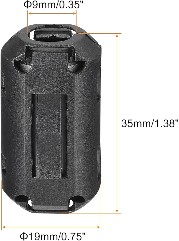 • الحجم الكلي: 9x19x35mm / 0.35x0.75x1.38 بوصة (ID*OD*H)؛ في عبوة من: 20 × حلقة النوى الفريت