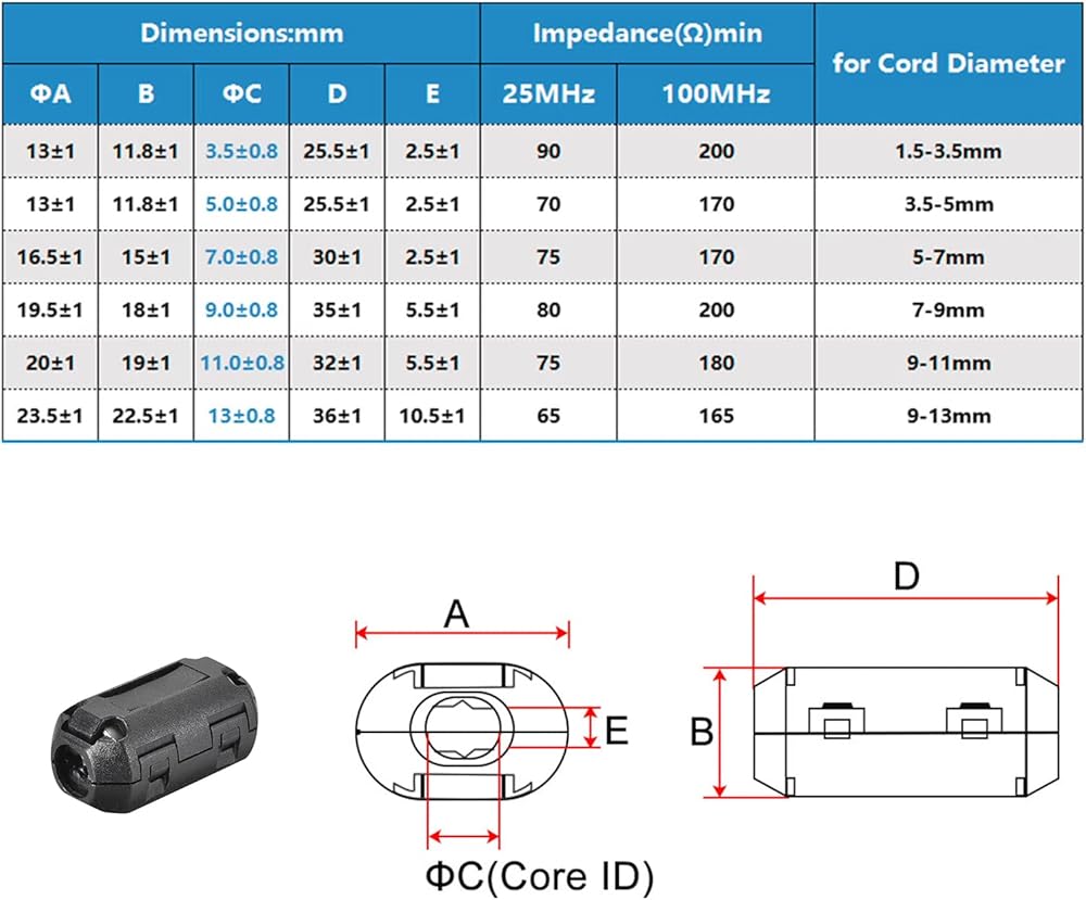 • قلب الفريت هو ملحقات للمساعدة في تحسين المجال الكهرومغناطيسي وجودة الإشارة حول الكابل، وتجنب التداخل الخارجي. يمكن استخدامه على جميع أنواع الأسلاك مثل: مسجل القيادة، وسلك الطاقة، وكابلات الصوت، وكابل البيانات، وكابل لوحة مفاتيح الماوس، وكابلات USB، وكابل سماعة الرأس.