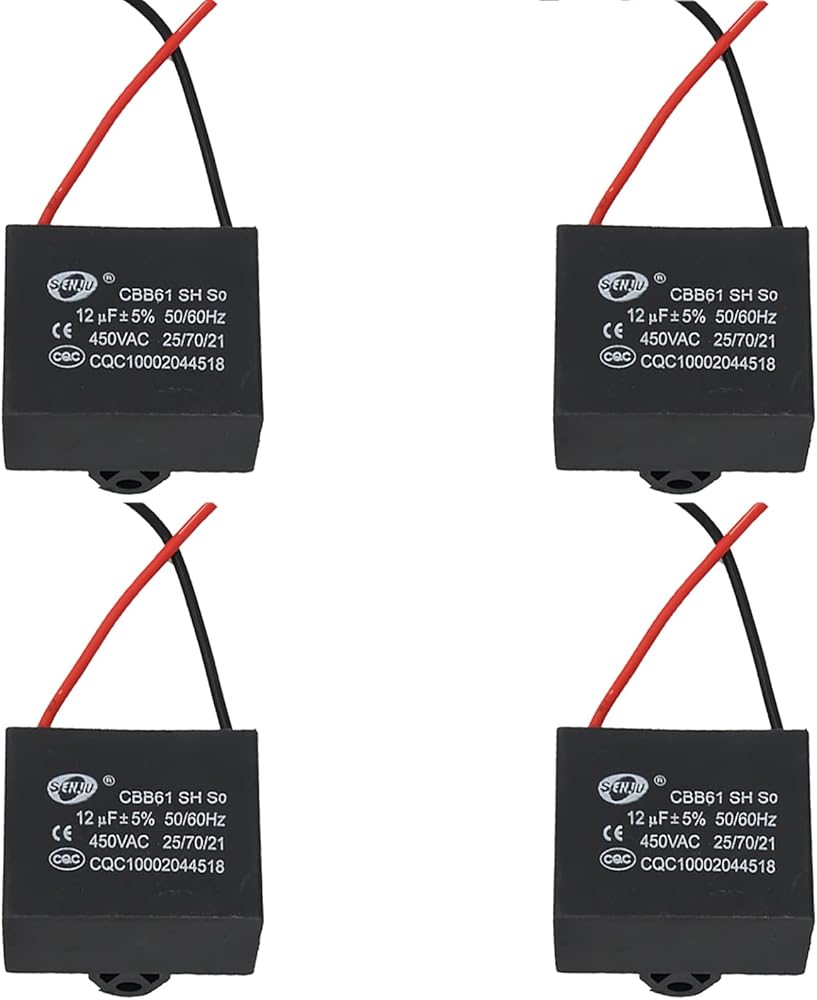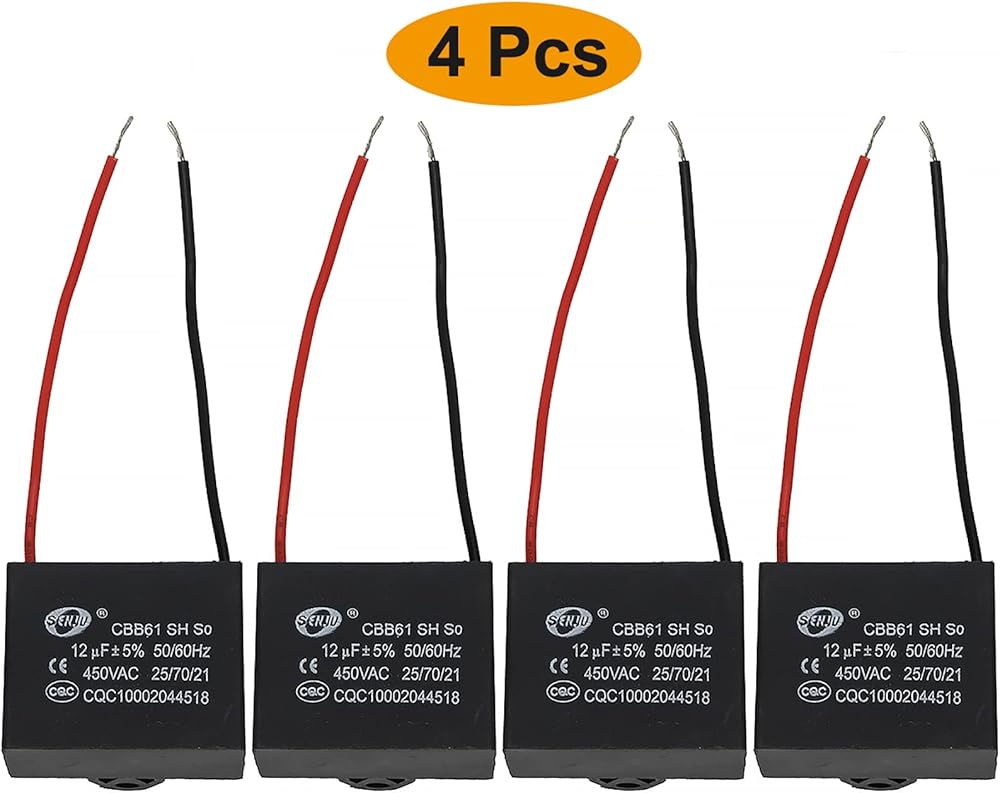 مكثف مولد CBB61 450 فولت تيار متردد 50/60 هرتز 12uF 2 سلك معدني من البولي بروبلين لمعدات المحركات الصغيرة ومحرك مروحة السقف (4 قطع) من ستارك كيه