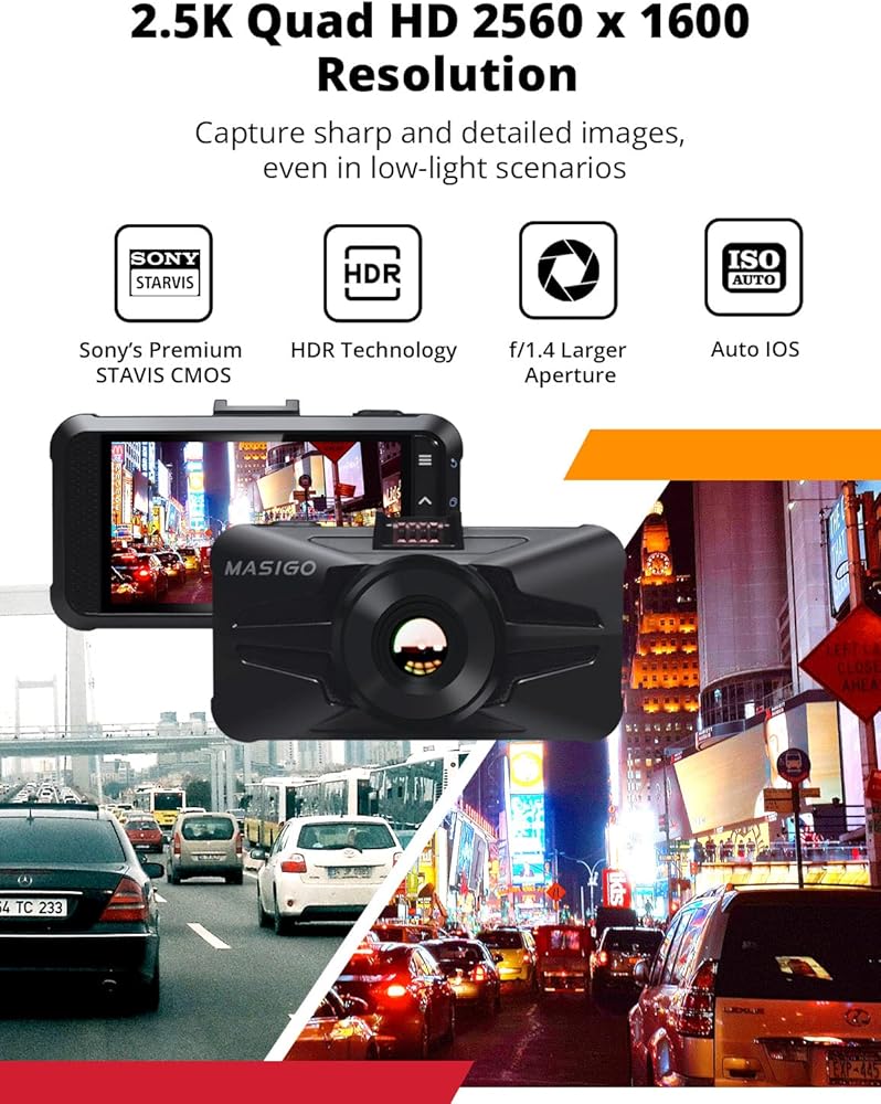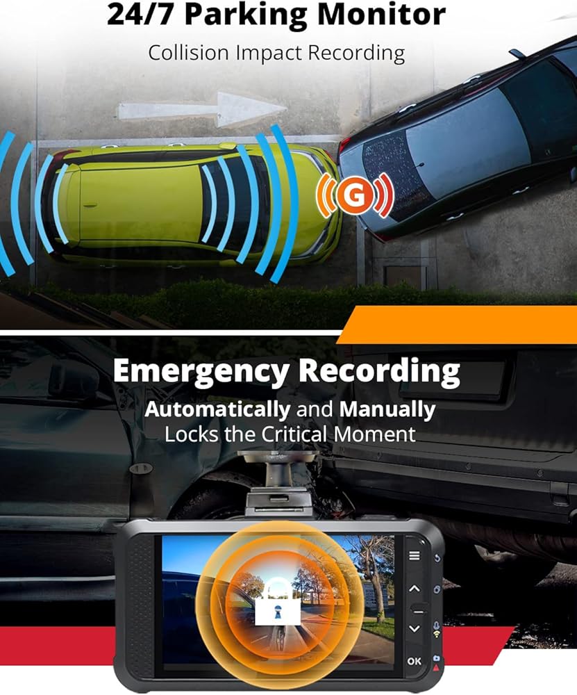 【مراقبة مستمرة للمركبة على مدار الساعة طوال أيام الأسبوع】توفر تغطية أمامية وخلفية مستمرة على مدار الساعة طوال أيام الأسبوع. إنه بمثابة الوصي الذي لا يتزعزع، مما يضمن الحماية المستمرة، حتى عندما لا تكون موجودًا. تقوم مجموعة الأسلاك الاختيارية بتشغيل التسجيل التلقائي عند الاصطدام، مما يعزز الأمان. قم بتنشيط وضع ركن السيارة دون عناء باستخدام مجموعة MASIGO Universal Hardwire Kit (تباع بشكل منفصل، ASIN: B0CGHFNGDR).