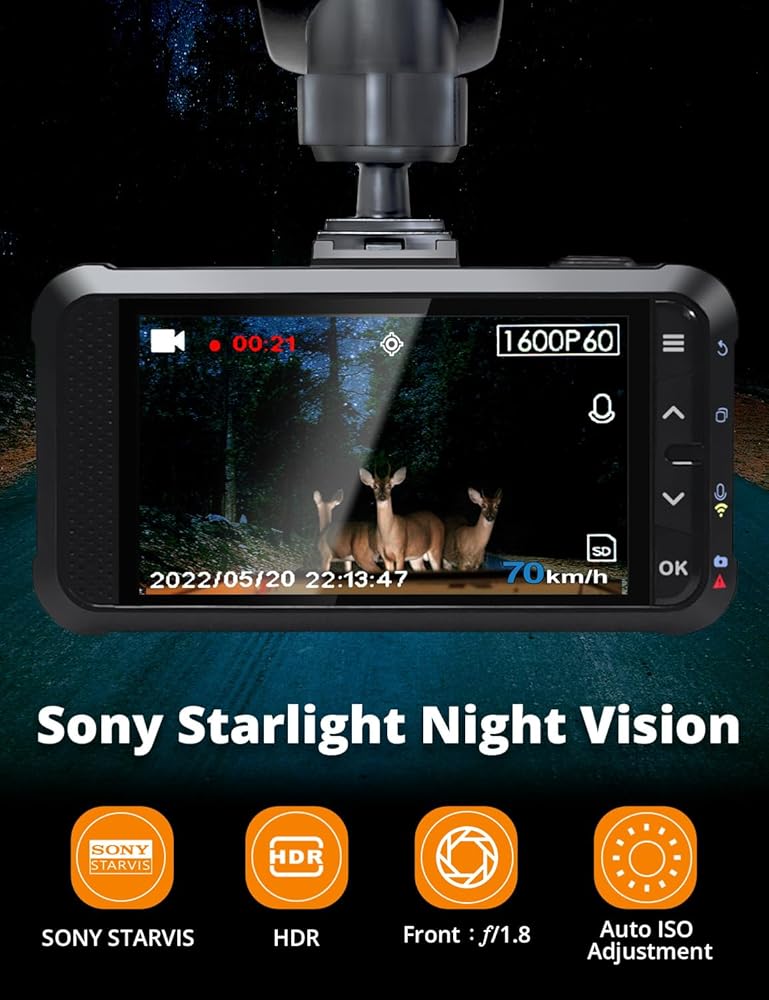 【قوة الرؤية الليلية ستارفيس 】القيادة بثقة، ليلاً أو نهارًا. مجهزة بمستشعر الصور STARVIS المتقدم من سوني وعدسة كبيرة مكونة من ستة عناصر بفتحة f/1.8، نقدم معالجة فيديو HDR متقدمة وتقنية فائقة لتقليل الضوضاء. توقع لقطات عالية الجودة في جميع ظروف الإضاءة، مما يمنحك راحة البال بغض النظر عن وقت انطلاقك على الطريق.
