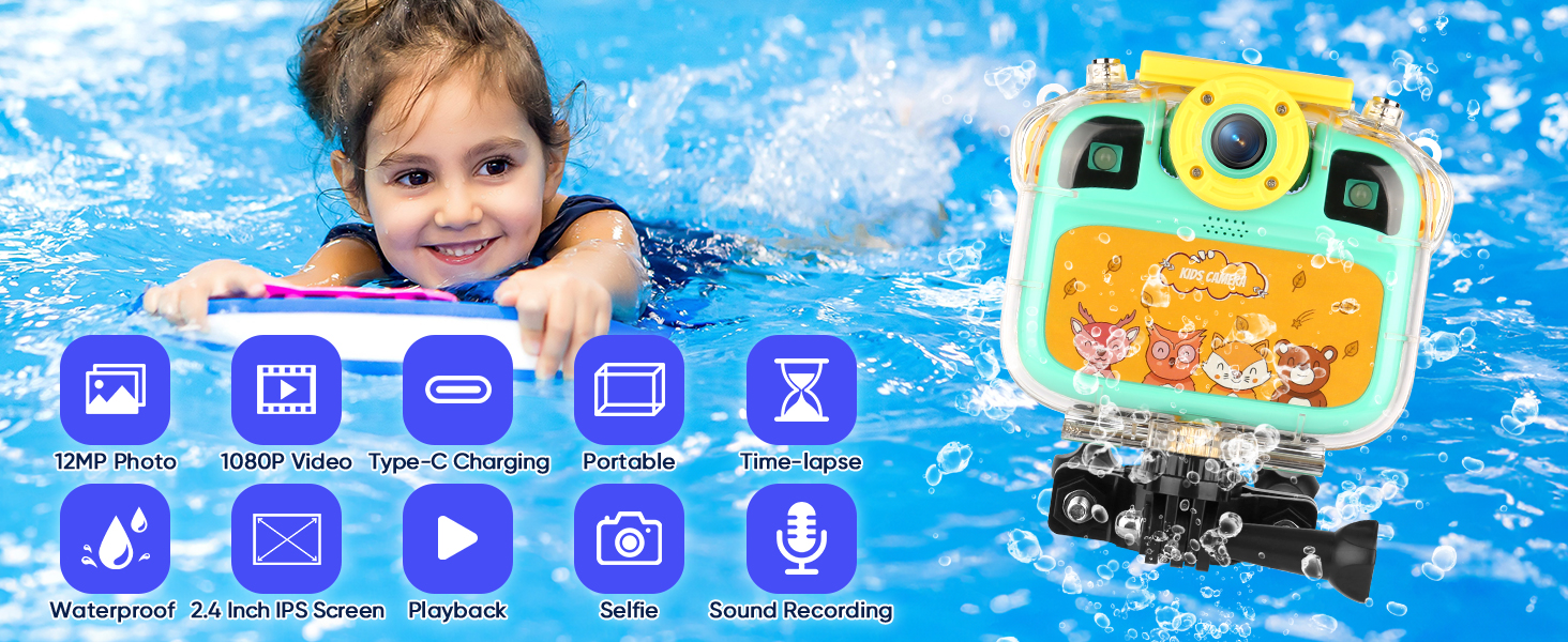 • 【كاميرا أطفال مقاومة للماء】-- تأتي هذه الكاميرا الرقمية تحت الماء للأطفال أيضًا مع حافظة مقاومة للماء، وسوف تلتقط صورًا ومقاطع فيديو عالية الجودة قابلة للغمر حتى عمق 98 قدمًا (30 مترًا)، وهي مثالية للغطس والسباحة والغوص وركوب الأمواج والسقوط. من خلال الأمواج والشواطئ أثناء رحلات العطلات والأنشطة المائية الأخرى في الهواء الطلق. نصائح هامة: لا تفتح العلبة المقاومة للماء عندما تكون تحت الماء.