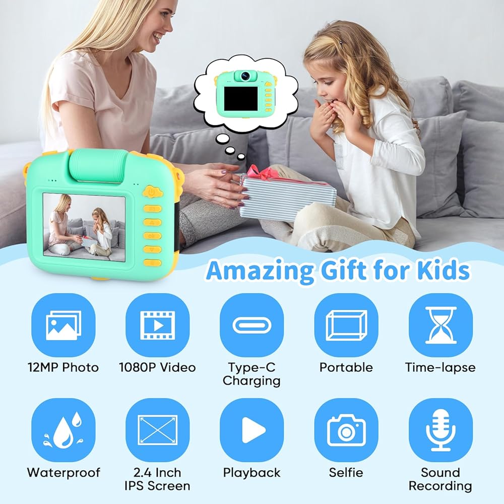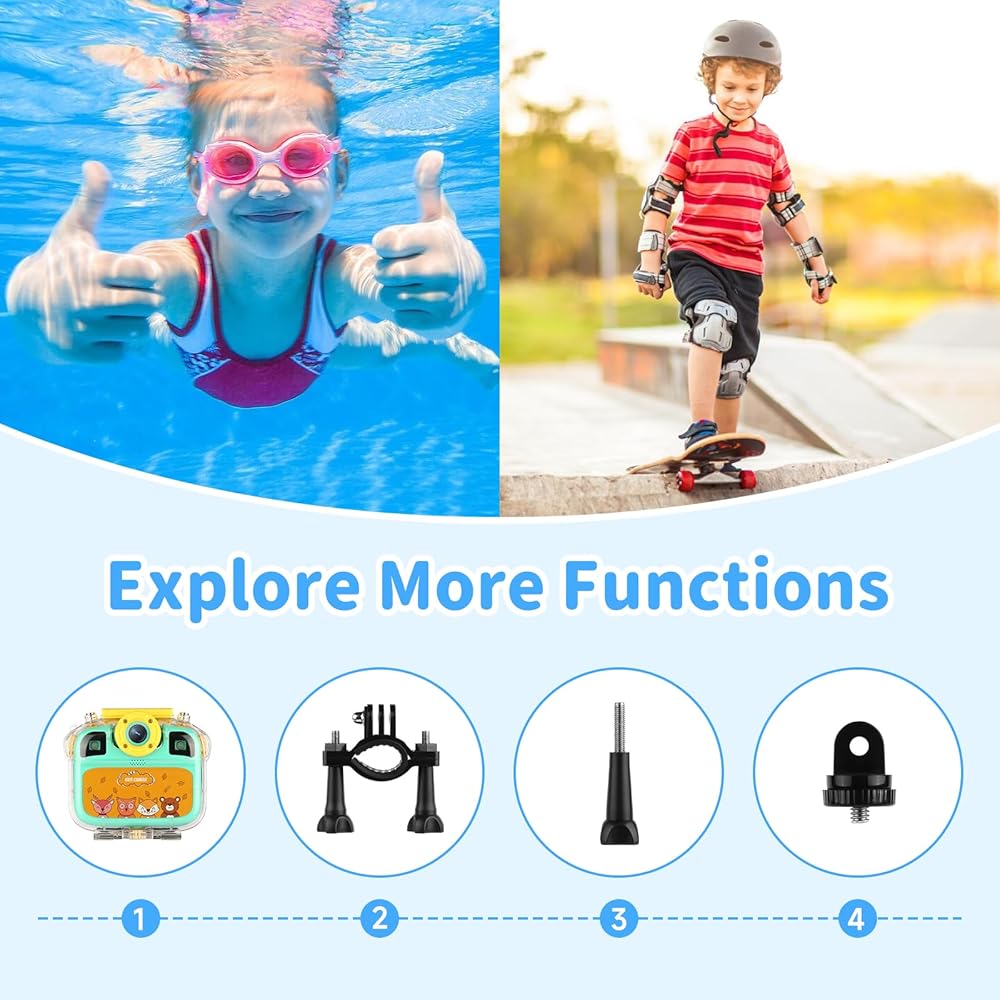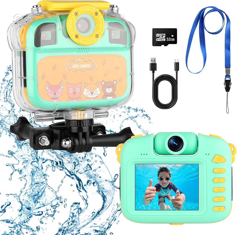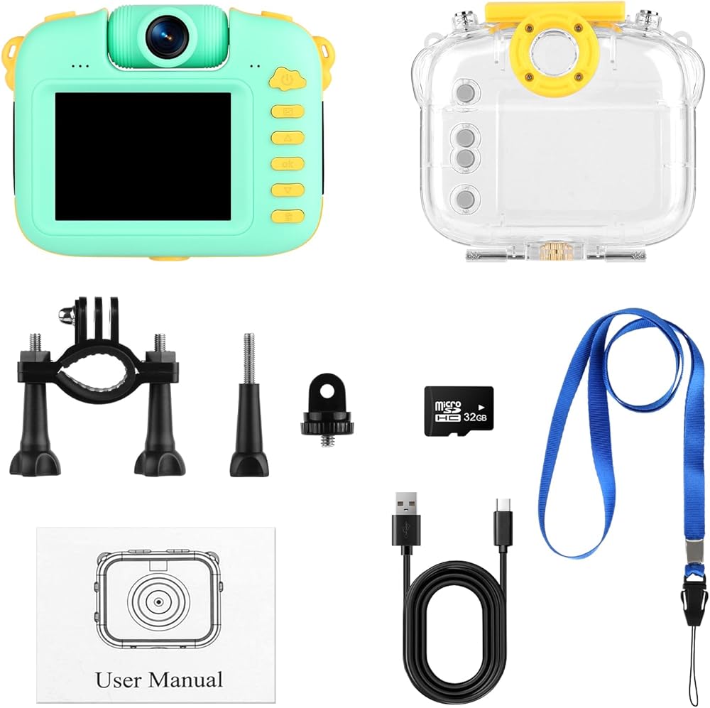 كاميرا أطفال 1080 بكسل، كاميرا مقاومة للماء للأطفال تحت الماء، هدايا كاميرا رقمية للأطفال للأولاد والبنات من سن 3 إلى 13 عامًا، كاميرا فيديو صغيرة عالية الدقة للأطفال بشاشة IPS 2.4 بوصة مع بطاقة 32 جيجابايت وغطاء سيليكون ناعم