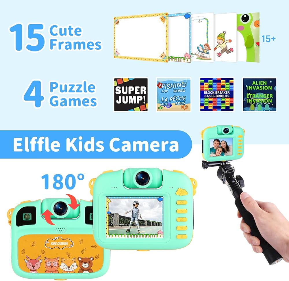 • [كاميرا رقمية للأطفال] - تأتي كاميرا الأطفال مع مجموعة متنوعة من الوظائف مثل التقاط الصور، وتسجيل الفيديو، والتشغيل، وزيادة إعدادات التاريخ، وإيقاف التشغيل التلقائي وما إلى ذلك، وهي مصممة للأطفال لتسجيل رياضاتهم الخارجية مثل ركوب الدراجات، التزلج والتزحلق على الجليد والتسلق. تأتي الكاميرا الرقمية للأطفال مع كاميرا 1080 بكسل، ويمكن للأولاد والبنات من سن 3 إلى 13 عامًا ترك لحظة رائعة وثمينة وتسجيل النمو.