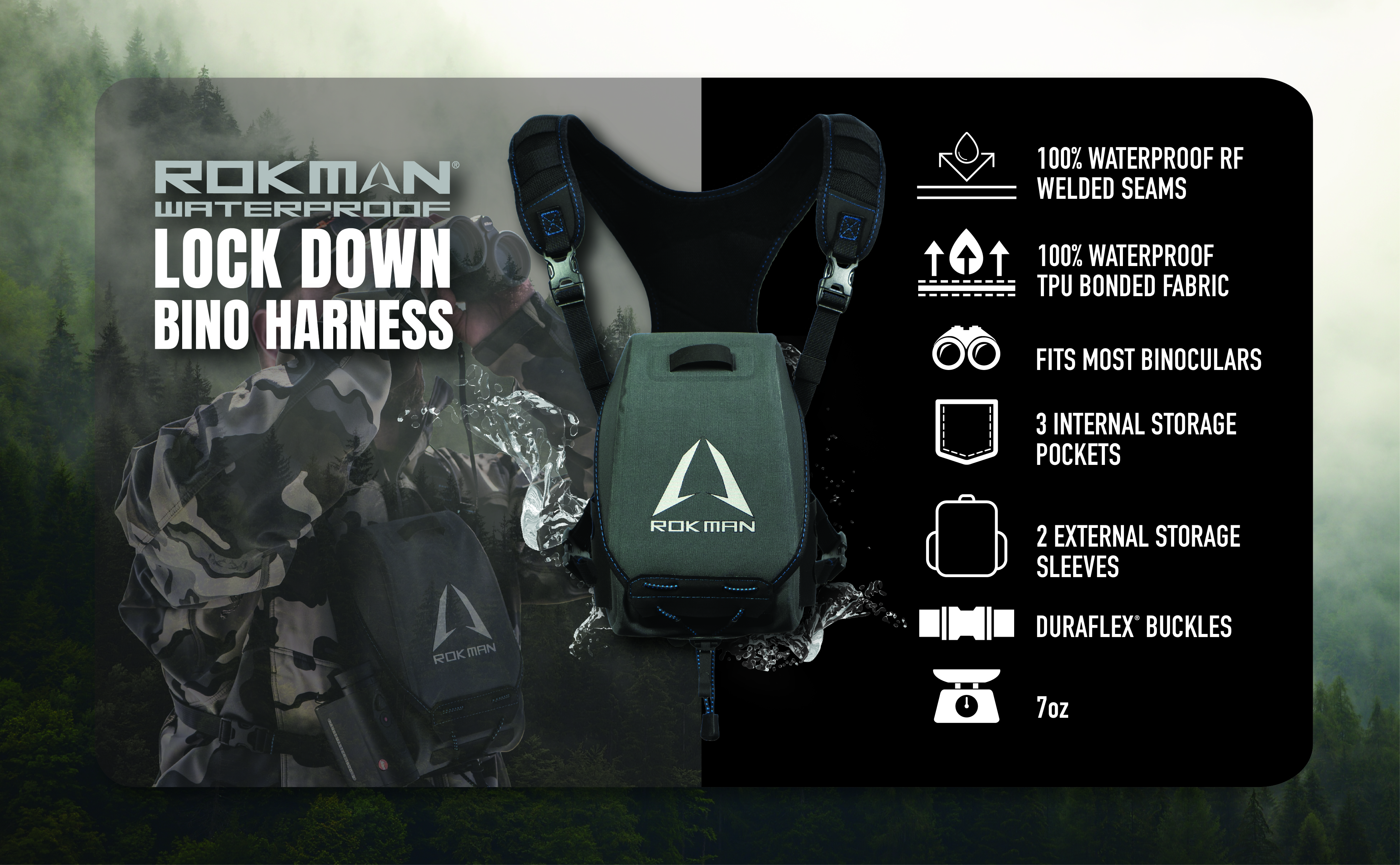 حافظة منظار من روكمان، حقيبة صدر بينو مقاومة للماء للرجال والنساء | 3 جيوب | تحمل جهاز تحديد المدى والجوال والمكالمات والبطاقات للصيد والمشي لمسافات طويلة ومشاهدة الطيور والتخييم