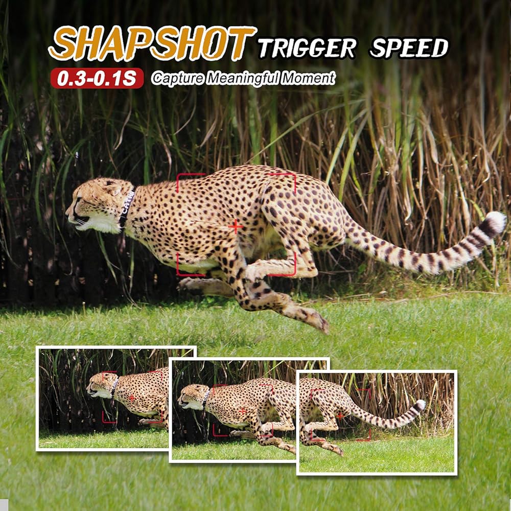 【سرعات تشغيل 0.2 ثانية】يتميز مستشعر الحركة بالأشعة تحت الحمراء الحساس بأقصى نطاق كشف يصل إلى 65 قدمًا، وكاميرا المسار 0.2 ثانية وسرعة تنشيط مستشعر الحركة لكاميرا الصيد الصغيرة لن تفوت أي حيوانات.