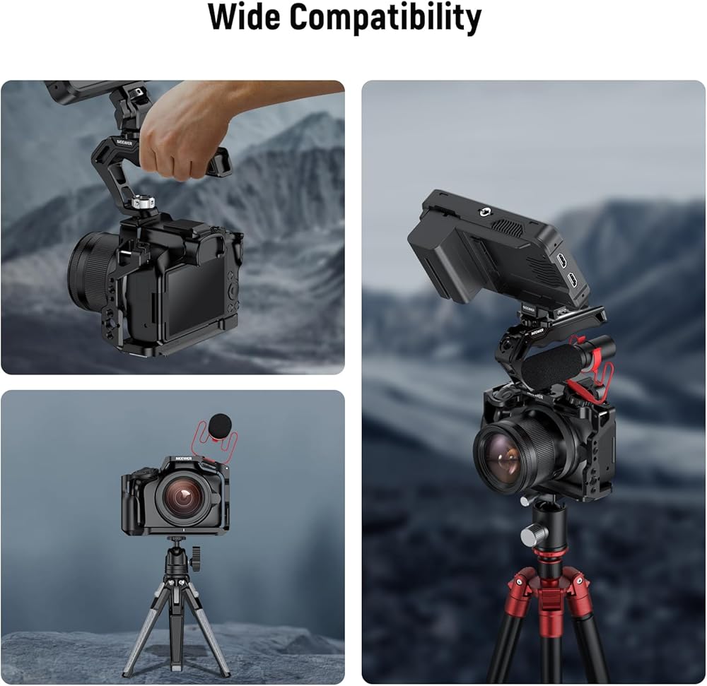 【All in One Formfitting Aluminum Cage for Canon R8】 Compatible with Canon EOS R8 camera only, the formfitting aluminum alloy camera cage is lightweight (5.7oz/163g) yet solid, which provides thorough protection and effortless handheld shooting experiences. CNC precision machining keeps the battery compartment, buttons, and LCD screen fully accessible