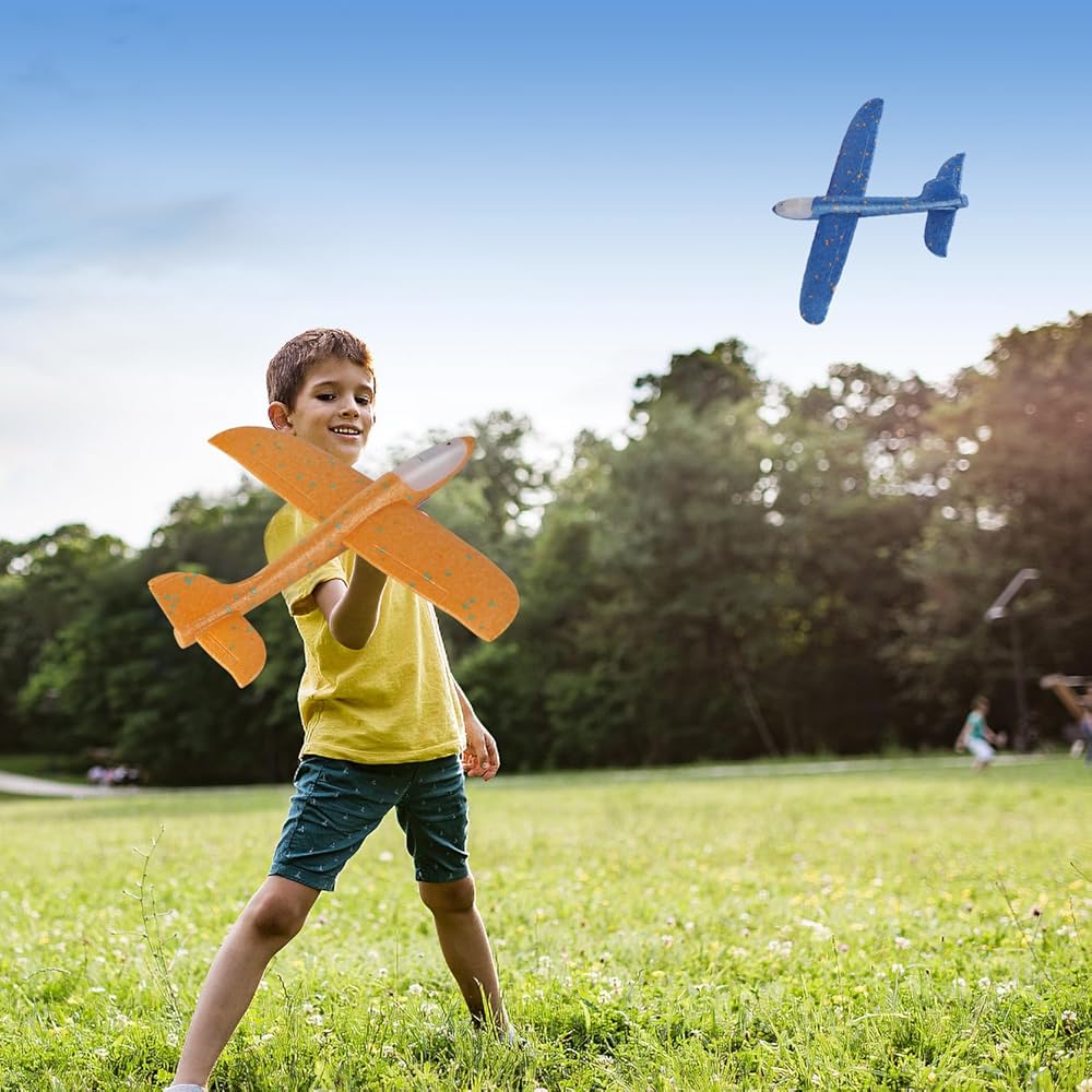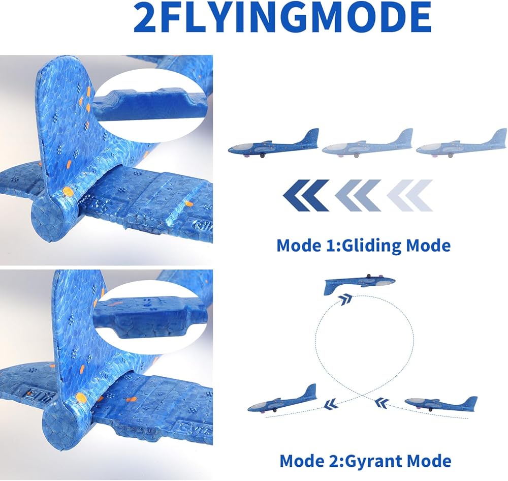 🎁Safe and fun game - The flying airplane is made of molded foam, which is safe and flexible, and will not hurt children's hands or feet. It is equipped with colorful LED lights, so children can enjoy the fun of flying toys even at night. Strong warranty, if you encounter any problems, please contact the seller directly first, and we will solve it perfectly for you