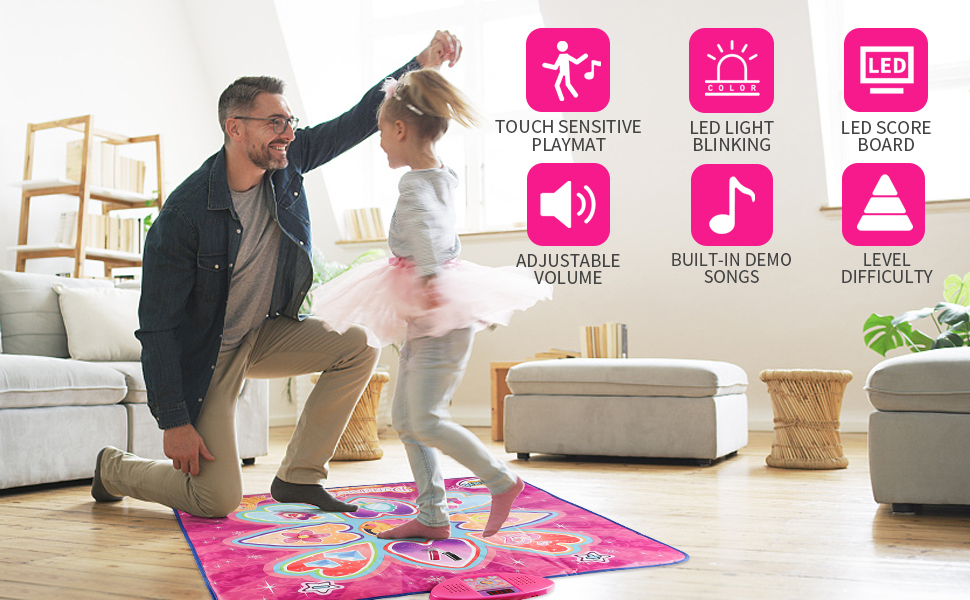 🎁【3 مستويات من الصعوبة】اتبع إيقاع الموسيقى المدمجة وارقص جنبًا إلى جنب مع المطالبات الوامضة على لوحة LED. مواكبة الإيقاع ومحاولة تحدي المستويات الثلاثة المختلفة! ستتلقى كل خطوة يخطوها طفلك تعليقات من الموسيقى والأضواء. إنها متعة رائعة للفتيات من سن 3 إلى 10 سنوات! تتطلب 3 بطاريات AA (غير متضمنة).