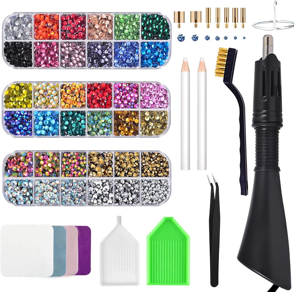 • 3 صناديق من أحجار الراين الساخنة متضمنة: عبوة واحدة من أحجار الراين البيضاء بأحجام مختلطة، 2 عبوة 3 مم 12 حجر راين متعدد الألوان، مفيدة حقًا في وضع وتطبيق كريستالات حجر الراين. وتأكد من أن أحجار الراين التي ستطبقها هي نمط Hot-Fix مع غراء Hot-Fix على الخلفية عند الشراء من أماكن أخرى.