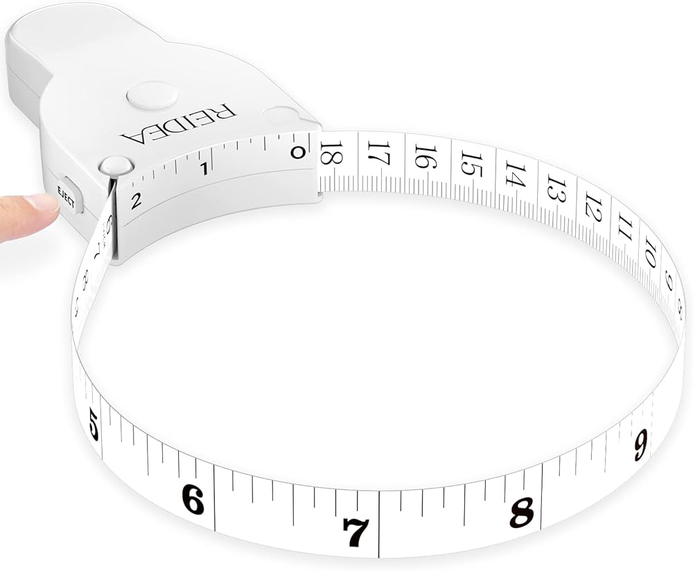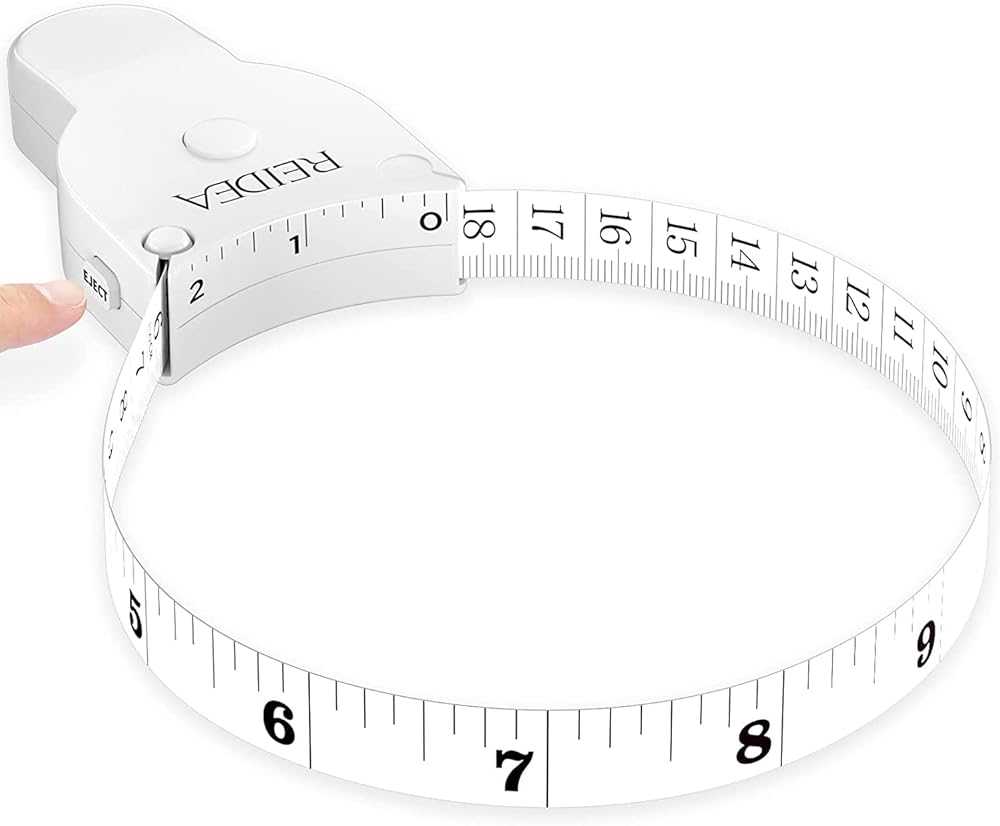 • شريط قياس الجسم - يقيس أي جزء من الجسم: الذراع، والفخذ، والساق، والصدر، والخصر، والأرداف، وأكثر من ذلك، يصل طوله إلى 60 بوصة (150 سم)، نظرًا لأن عرض شريط القياس يبلغ 2 بوصة، فإننا نبدأ من 2 بوصة / قياس 5 سم للمساعدة في تبسيط عملية القياس.