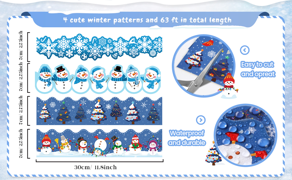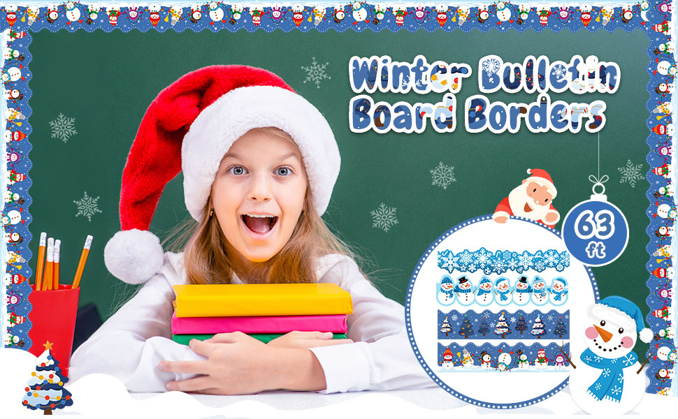 63ft الشتاء نشرة المجلس الحدود ثلج نشرة مجلس الزينة عيد الميلاد الحدود ورقة عطلة الحدود ندفة الثلج شجرة عيد الميلاد موجة حافة تقليم للمدرسة الفصول الدراسية مكتب الطرف (نمط حية)