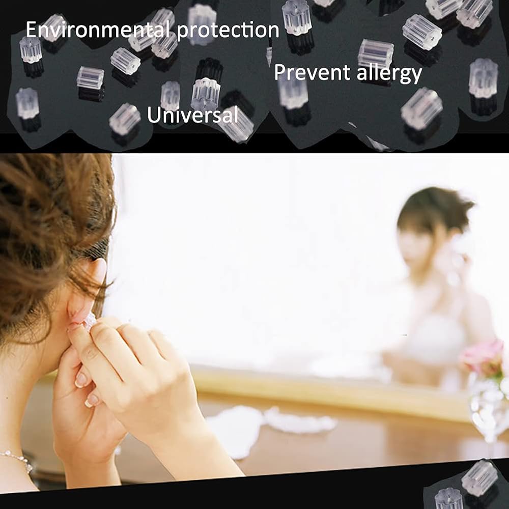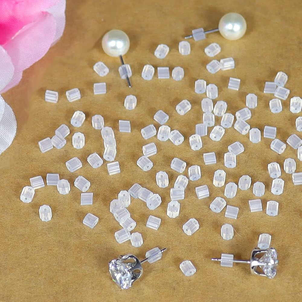 أقراط خلفية للأذنين الحساسة، 200 قطعة من السيليكون الشفاف للأزرار وخطافات الأقراط المضادة للحساسية وسدادات الأقراط إكسسوارات المجوهرات