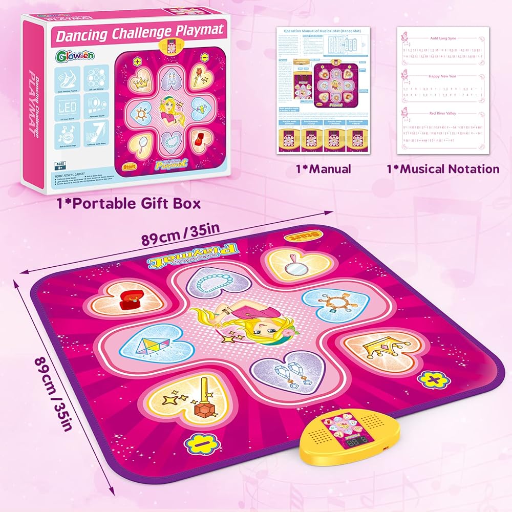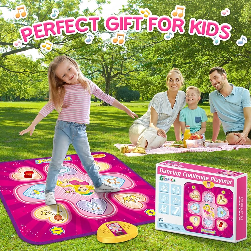 Gloween Dance Mat - Dance Toys Gifts for Age 3-10 Girls, Dance Play Mat with 7 Game Modes, LED Lights, Adjustable Volume, Built-in Music - Christmas Birthday Gifts for 3 4 5 6 7 8 9+ Years Old Kid