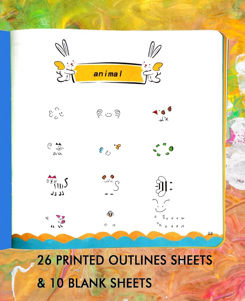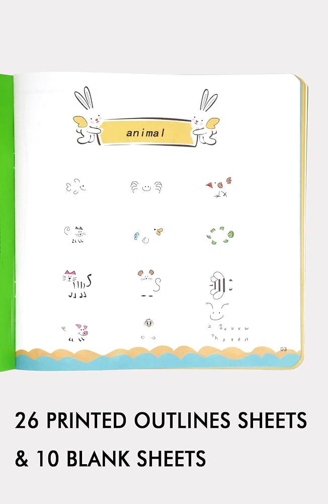 • ما ستحصل عليه: مع كل عملية شراء تحصل على 36 ورقة، 26 منها مطبوعة بصور مختلفة (حيوان، فاخر، مشمش الرياح) و10 أوراق فارغة للفنان الصغير لإطلاق العنان لخياله.
