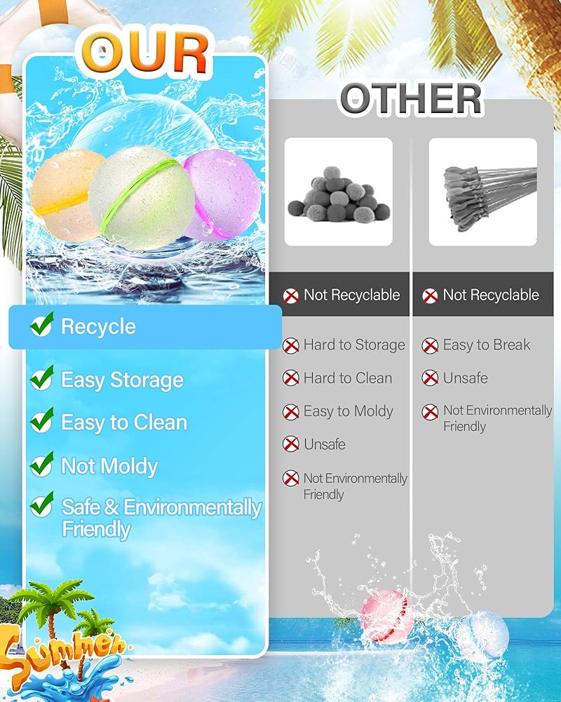 🎁【Perfect Gift Ideas】Our reusable water balloons are the perfect way for families and groups to enjoy summer water fun together. These water balloons also make great birthday party gifts for boys and girls aged 3 4 5 6 7 8+. Don't miss out on creating unforgettable summer memories with your loved ones!