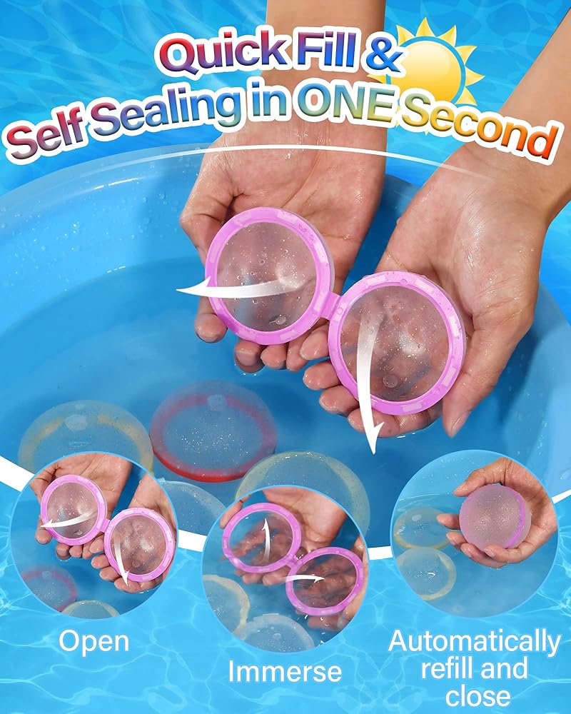 💧【Quick fill for Faster Fun】:Unique magnetic self-sealing technology means the water ball can refill in just 1 second when immersed in water, no tedious and time-consuming process, no tying hassles about filling the balloons.