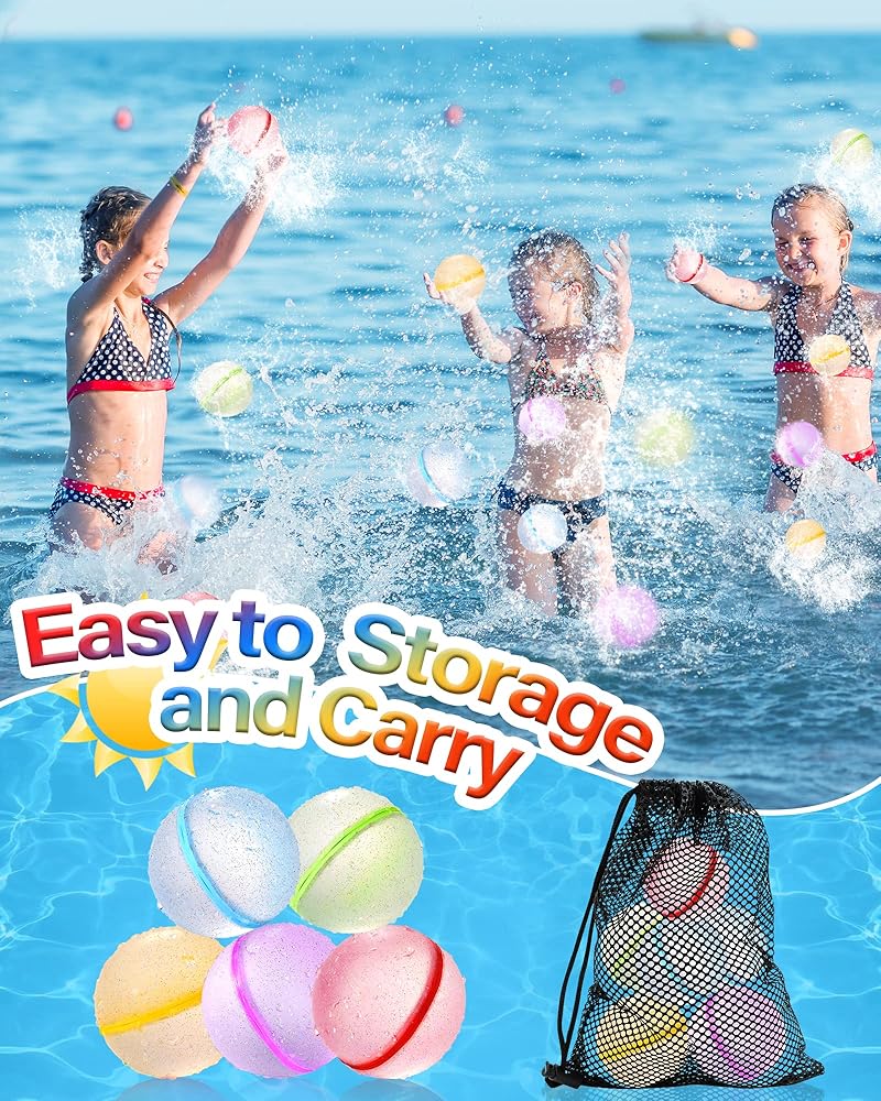 🏖️【Mesh Bag & Easy Storage】Come with a sturdy premium mesh bag, the water balls are well organized, easy to store and carry away. You can take it with you to gardens, beach, parks, water parks, swimming pools, and outdoor places. After having fun, put it in the mesh bag and use it next time.