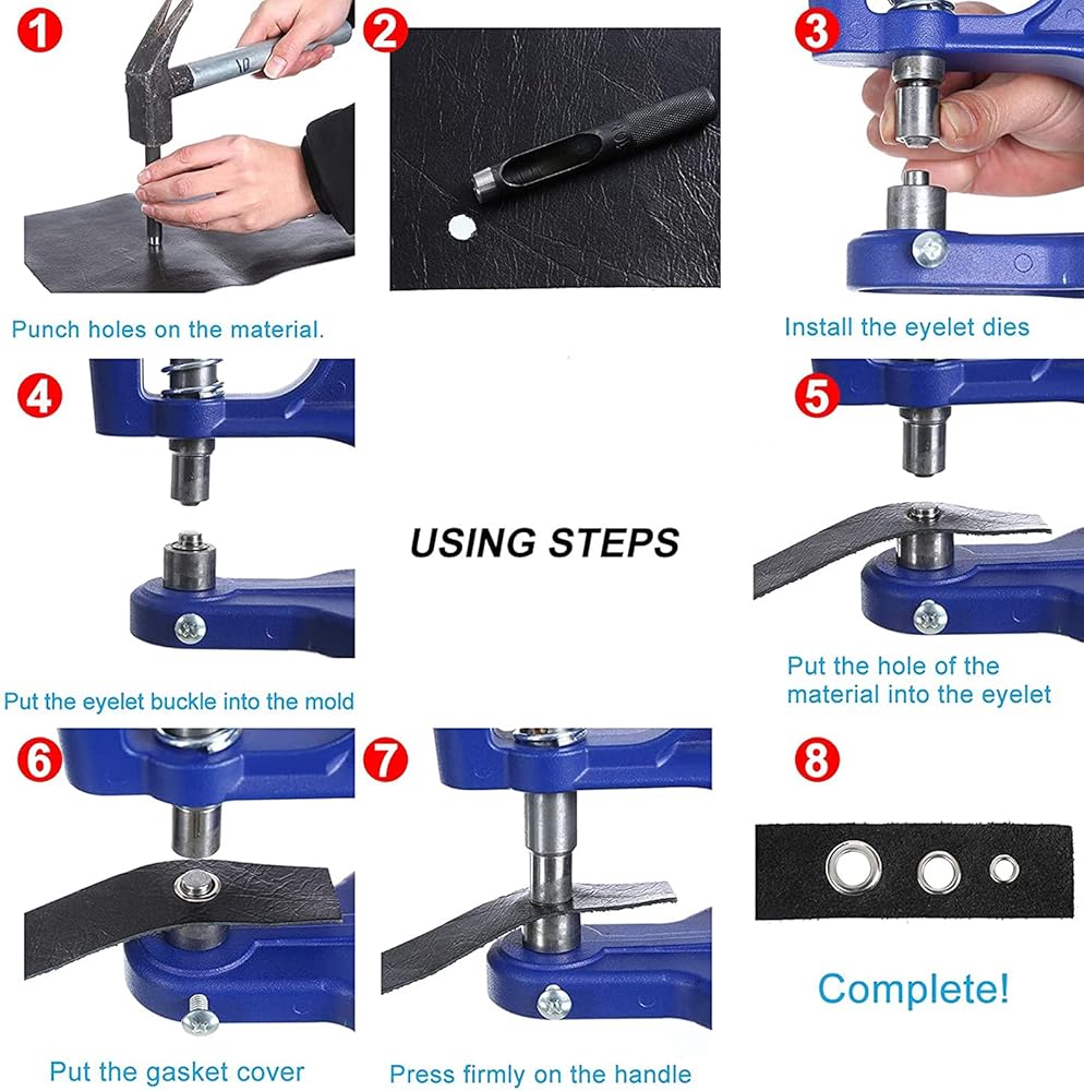 • This grommets eyelet tool kit can be applied to set buttonholes, studs, rivets, snaps, jeans buttons, eyelets,etc., convenient to use and enough to meet your various needs.If you find damage or missing parts after receiving the package, please contact us in time and we provide free return and replacement services.