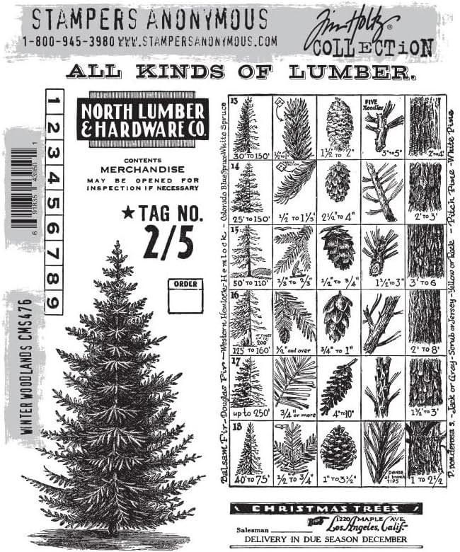 بالإضافة إلى ذلك، ستجد خمس لافتات عتيقة تحمل عبارات نورث لامبر اند هاردوير كو، يمكن فتح بضائع المحتويات للفحص إذا لزم الأمر، العلامة رقم 2/5، شجرة الكريسماس لوس أنجلوس كاليفورنيا التسليم في الموسم المناسب ديسمبر، صف من الأرقام. تزين جميع أنواع الخشب ورقة الطوابع الآسرة هذه، مما يسمح لك بغرس مشاريعك بلمسة من السحر الريفي والحنين الشتوي.