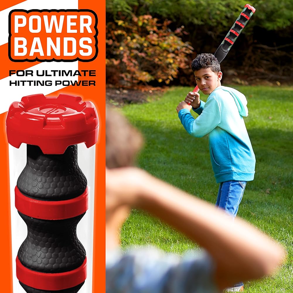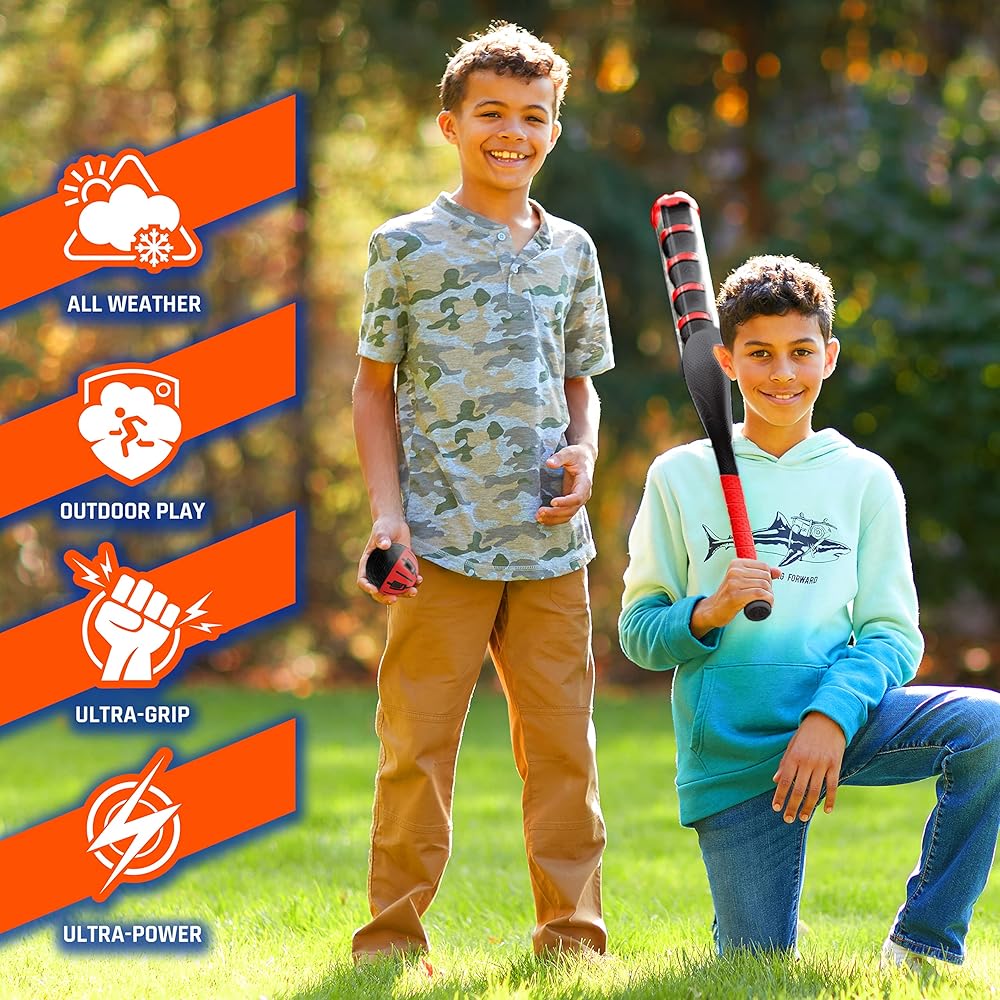 POWER BLAST BAT: The Power Blast bat is designed with NERF power core technology with built in power bands for a super charged sweet spot to help young sluggers hit the ball outta sight!