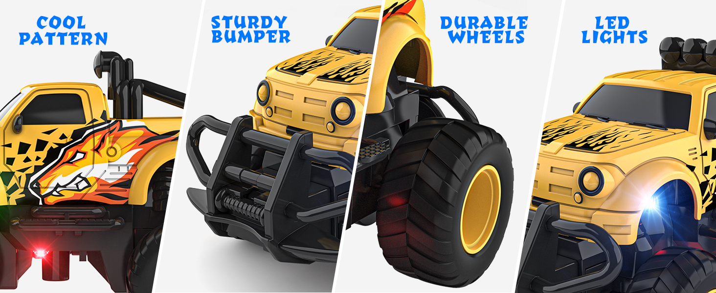 【ألعاب سيارات مبتكرة للتحكم عن بعد】: تتميز سيارة التحكم عن بعد الصغيرة هذه للأولاد بتصميم نمط ذئب رائع، مما يجعلها جذابة بصريًا للأطفال من سن 3 إلى 7 سنوات. شاحنة التحكم عن بعد ليست فقط مصنوعة من هيكل بلاستيكي ABS عالي الجودة وإطارات مطاطية قوية، ولكنها أيضًا مجهزة بمصباحي إشارة LED لسهولة القيادة الليلية. إضافة طبقة إضافية من المرح إلى تجربة اللعب للأطفال الصغار.