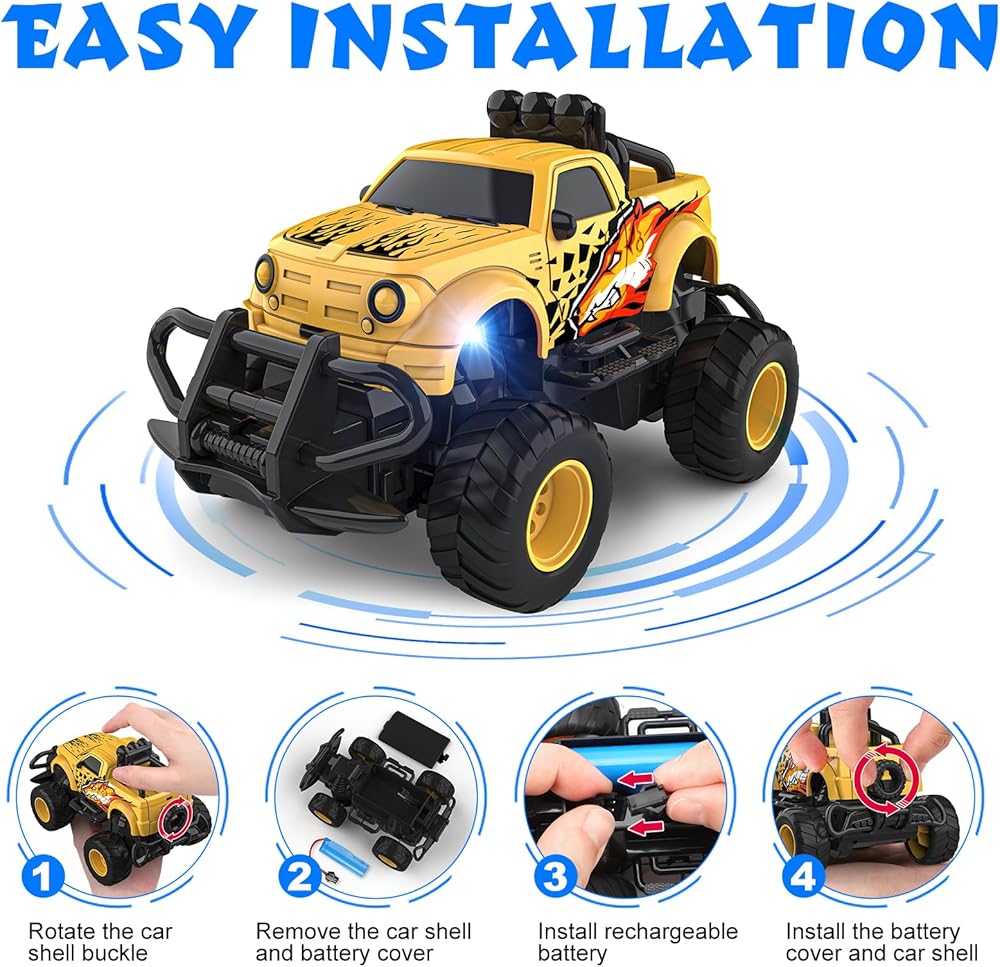 سيارة التحكم عن بعد Mafbeanl للأولاد 4-7، سيارة RC صغيرة بمقياس 1:43 للأطفال 3-5، ألعاب سيارات شاحنة هدايا عيد الميلاد للأطفال الصغار 3 4 5 6 7 سنوات من الأولاد (أصفر)