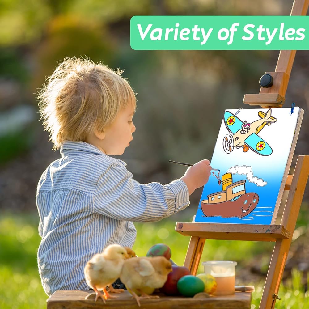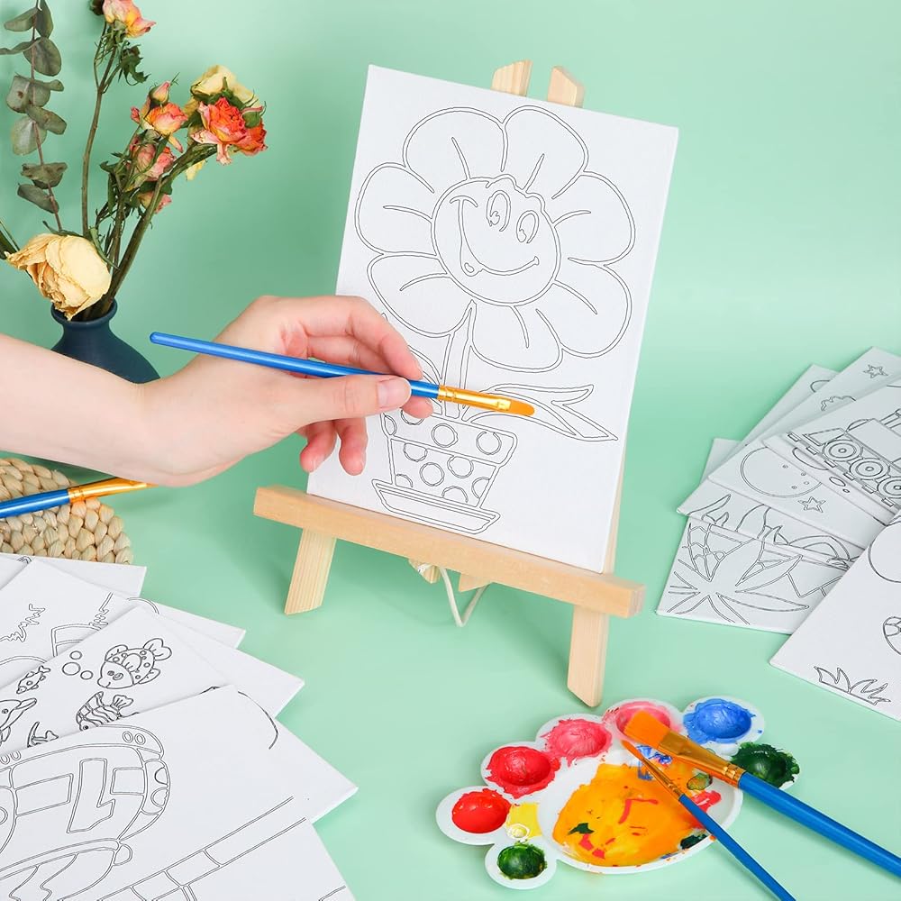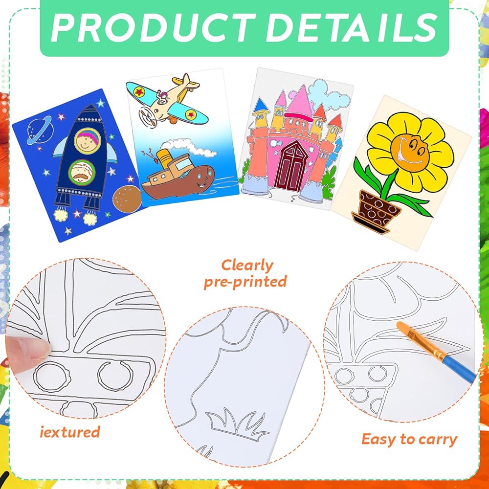 إطار قماشي: يبلغ مقاس اللوحة المطبوعة مسبقًا حوالي 6 × 7.9 انش/ 15 × 20 سم، وهي مطبوعة مسبقًا بأنماط بسيطة وواضحة، يمكنك صنع اللون حسب حاجتك، مما يحفز خيال الأطفال