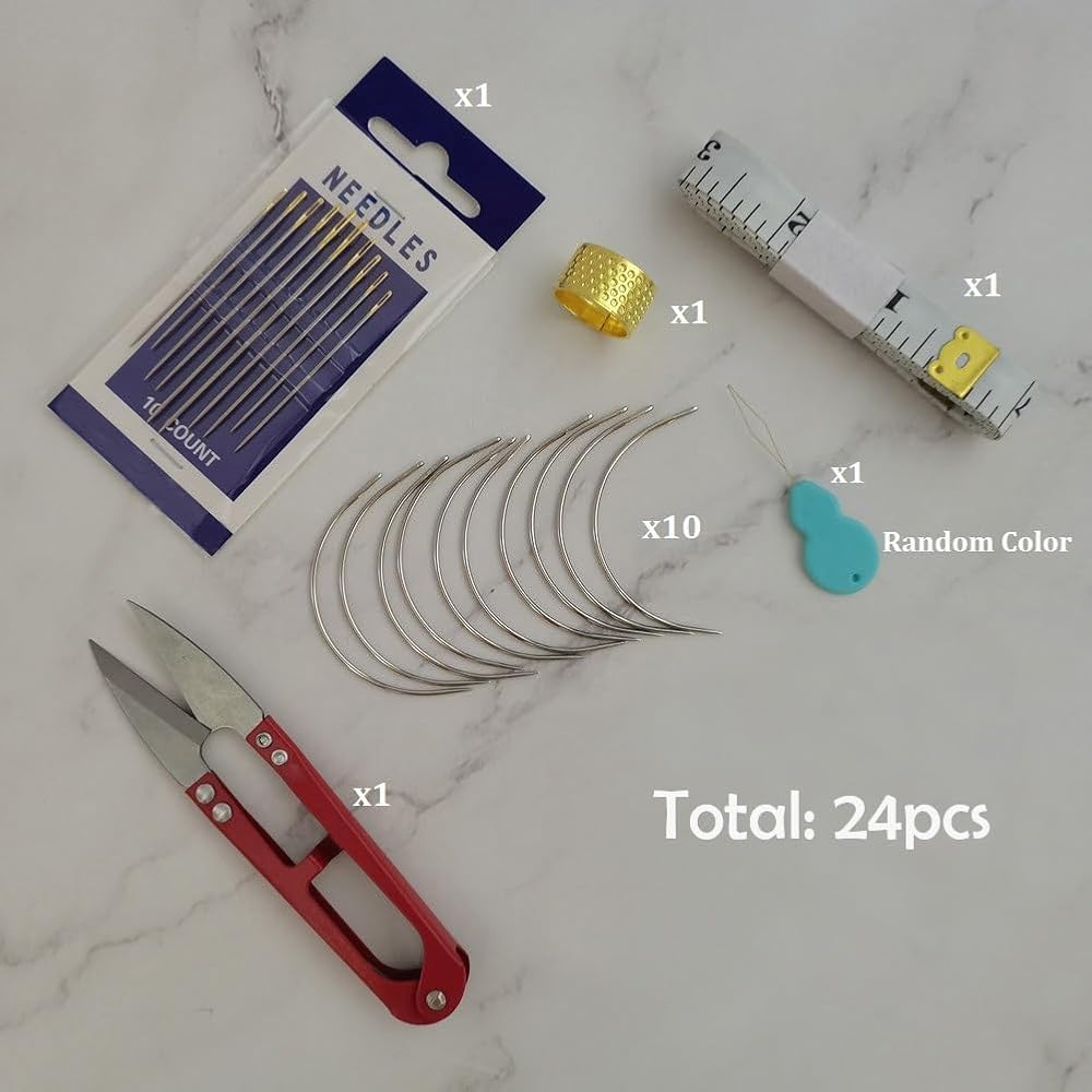 Professional Hair Extension Thread and Needle Set,Contains Everything You Need To Sew in Extensions or Install Weaves Like:Hair Sewing Thread,Wig T pins,C Curved Needles,Scissors,Tape Measure,Needle Threader and Thimbles.Extremely Affordable and Reliable Hair Sewing Supply Kit.