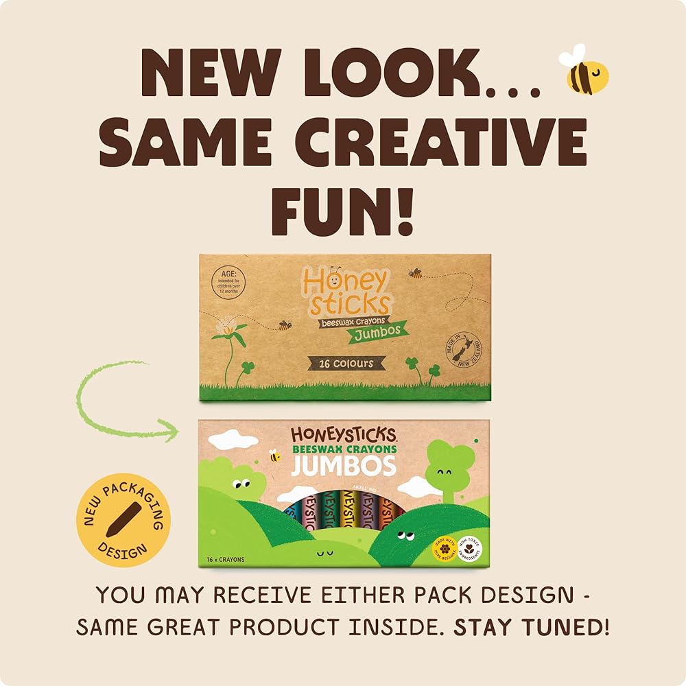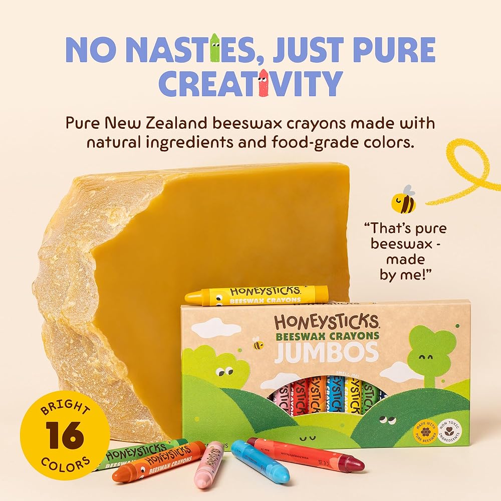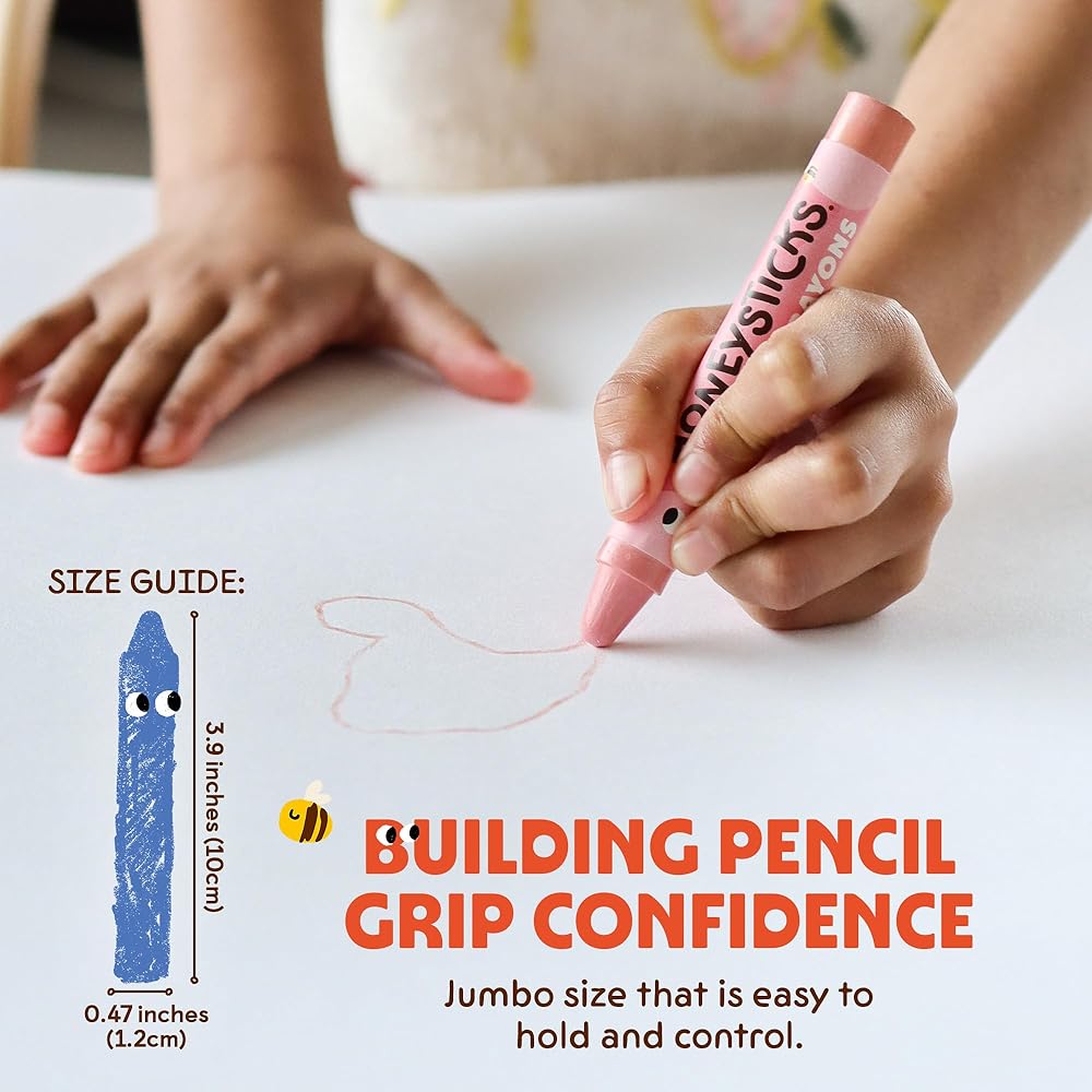 سهلة الحمل، يصعب كسرها: أقلام تلوين جامبو المتينة من هوني ستيكس سهلة الإمساك بها على الأيدي الصغيرة، ولكن يصعب على الأيدي الصغيرة كسرها! ملفوفة للمساعدة في الحفاظ على نظافة اليدين.