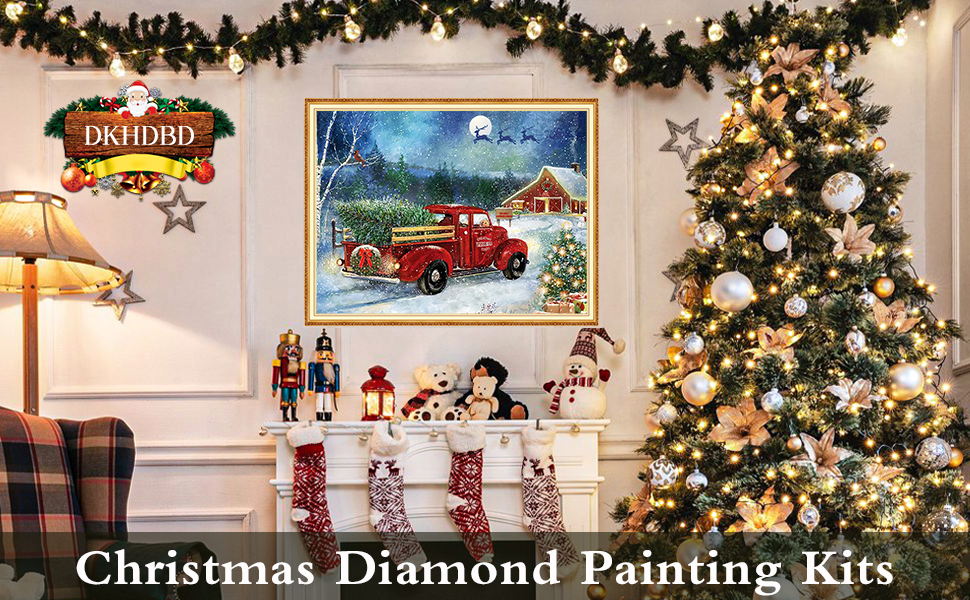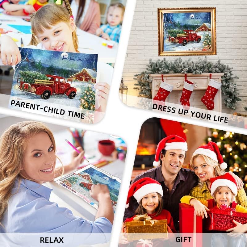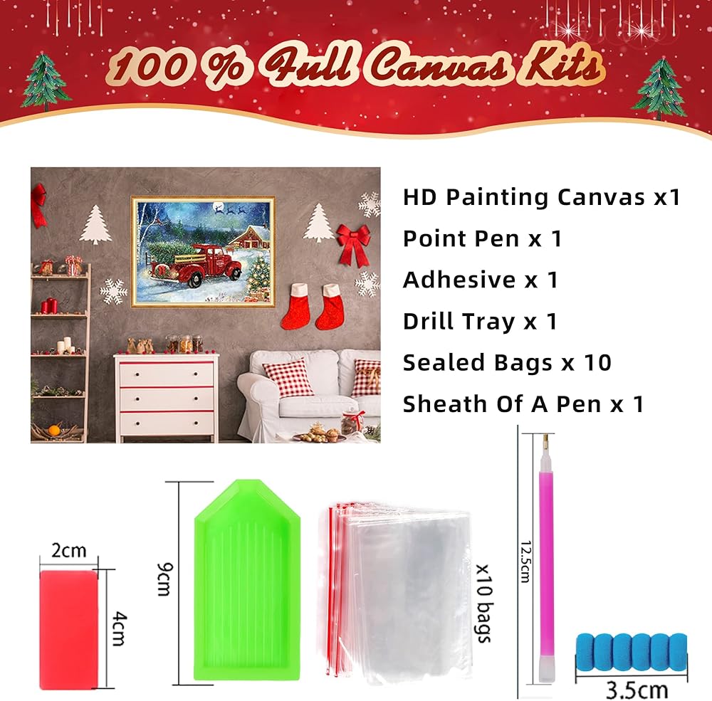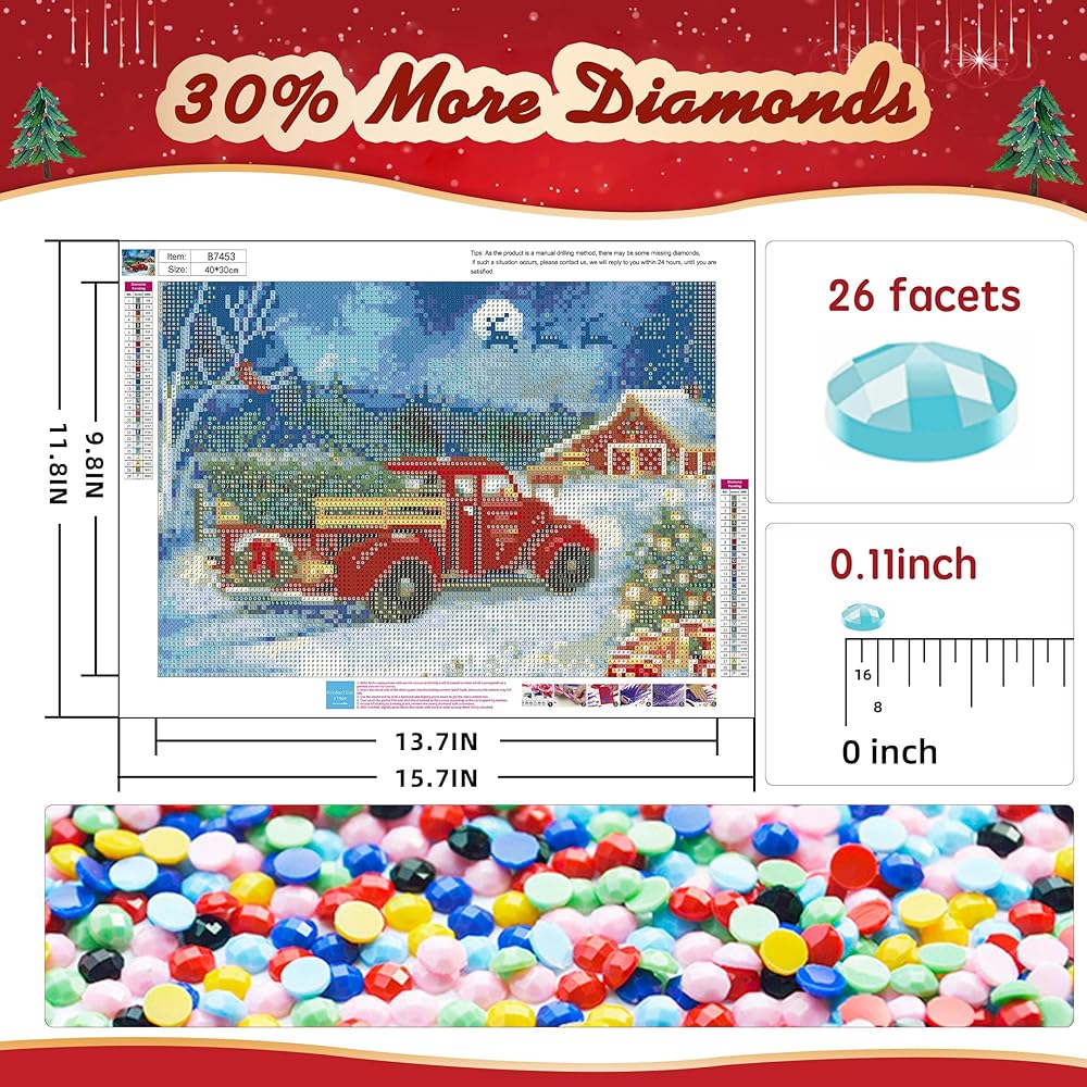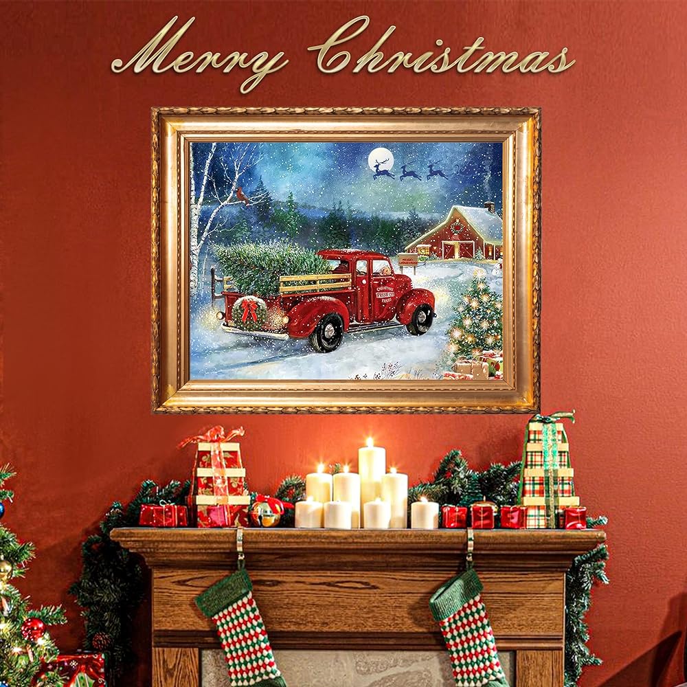 مجموعات الرسم الماسي للكريسماس، مجموعة فنية ماسية على شكل شاحنة حمراء للبالغين، 12 × 16 انش يمكنك الطلاء بالأرقام، لوحات منقطة ماسية كاملة الحفر لفنون الصور والحرف اليدوية لديكور الحائط المنزلي (ليلة ثلجية)
