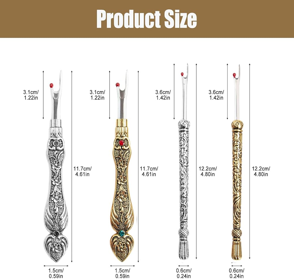 تصميم عتيق: تتميز أداة الخياطة هذه بتصميم عتيق مع نمط ثلاثي الأبعاد دقيق ومفصل على المقبض، مما يضيف إلى سحر وتذكرنا ببريق الماضي، وهو ما يرضي العين للاستخدام وليس عمليًا فحسب، بل أيضًا إضافة جميلة لمجموعة الخياطة الخاصة بك.