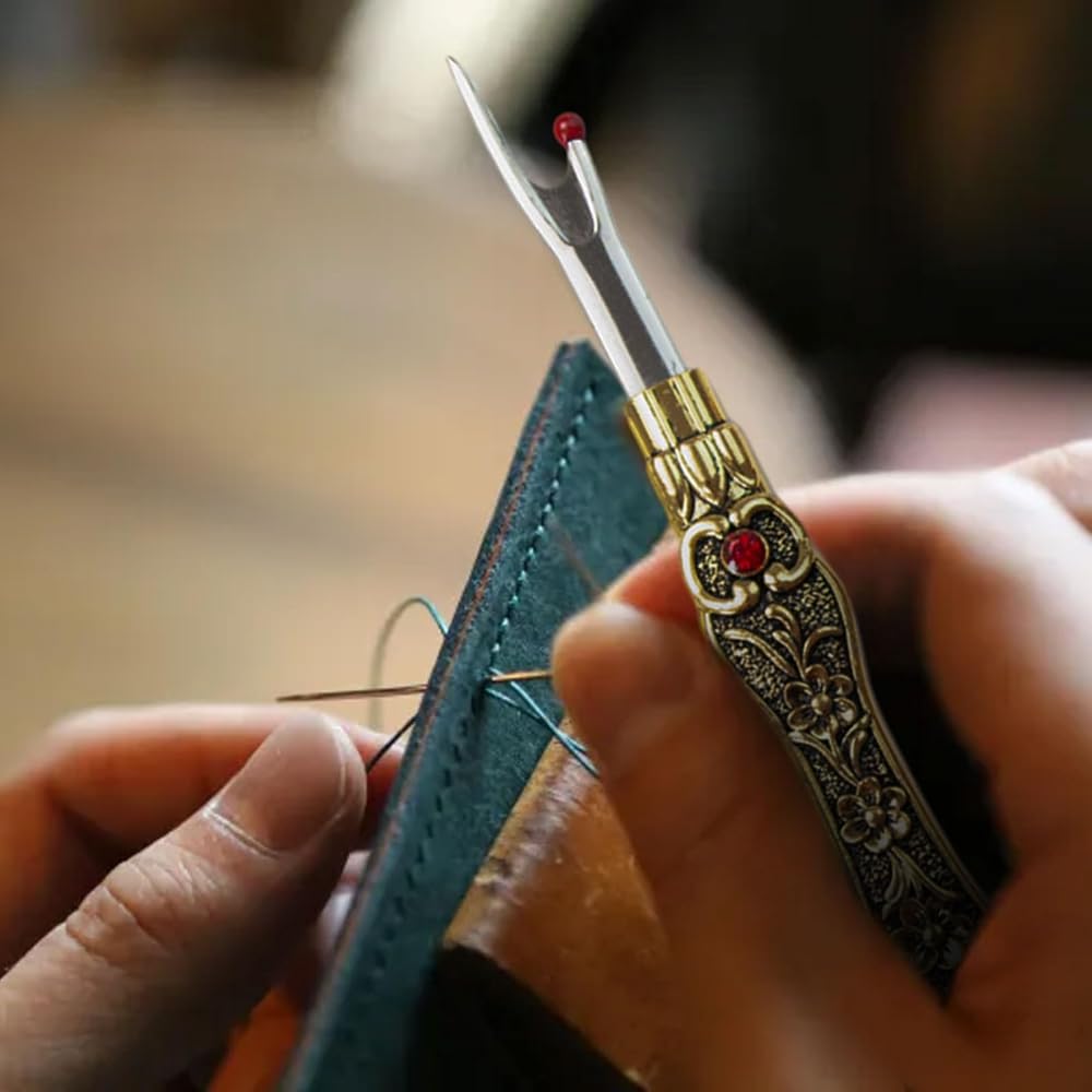 1. تتميز أداة الخياطة هذه بمقبض منحوت بدقة مصنوع من خليط الألومنيوم المقاوم للصدأ والستانلس ستيل.