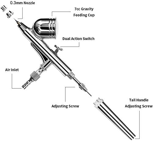 بخاخة تغذية الجاذبية متعددة الأغراض ودقيقة ومزدوجة الحركة مع إبرة/فوهة 0.3 مم وكوب سائل تغذية الجاذبية 7 سم مكعب مع غطاء لسهولة رش السوائل وسهولة التنظيف. تأثير الرش رائع، ولا يسبب اختلافًا في اللون.