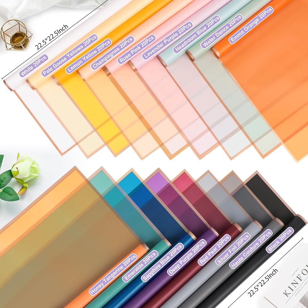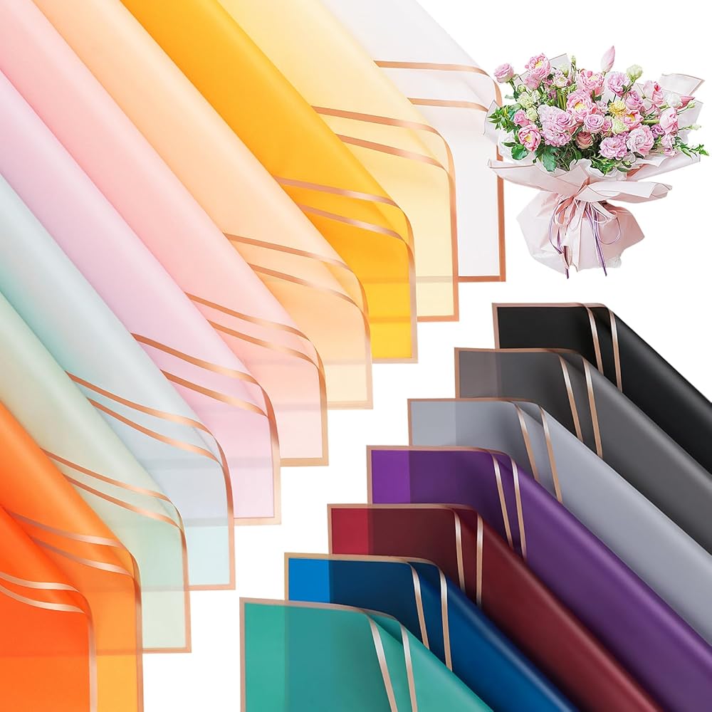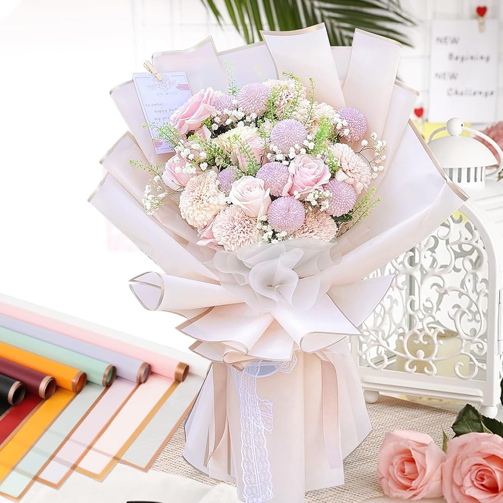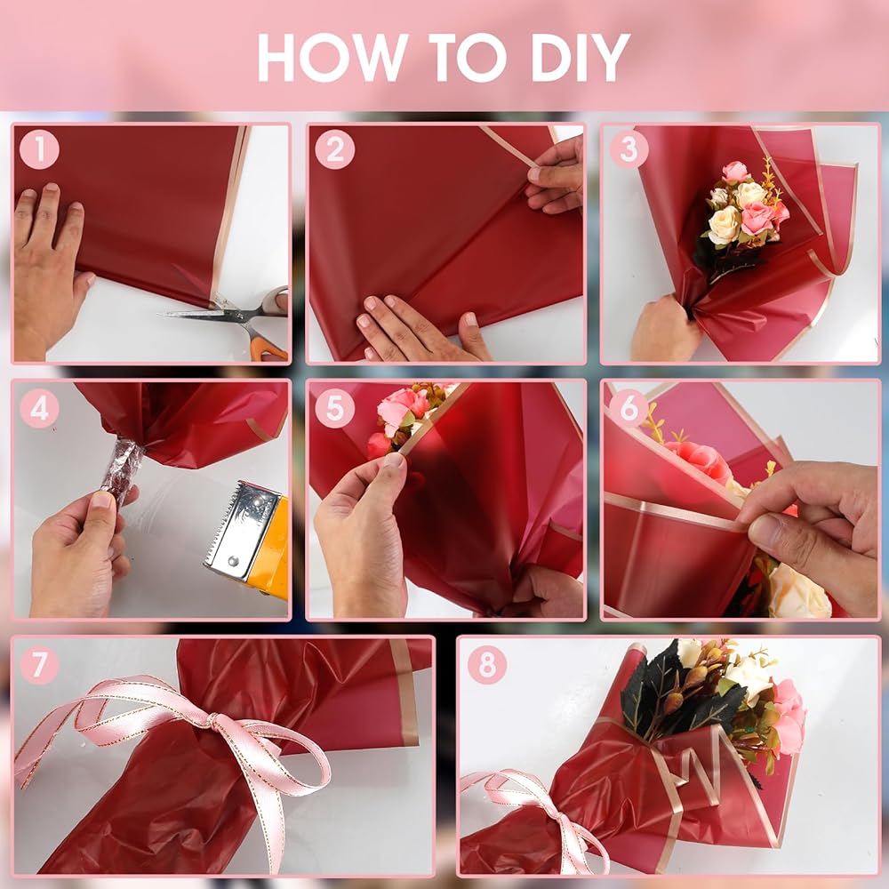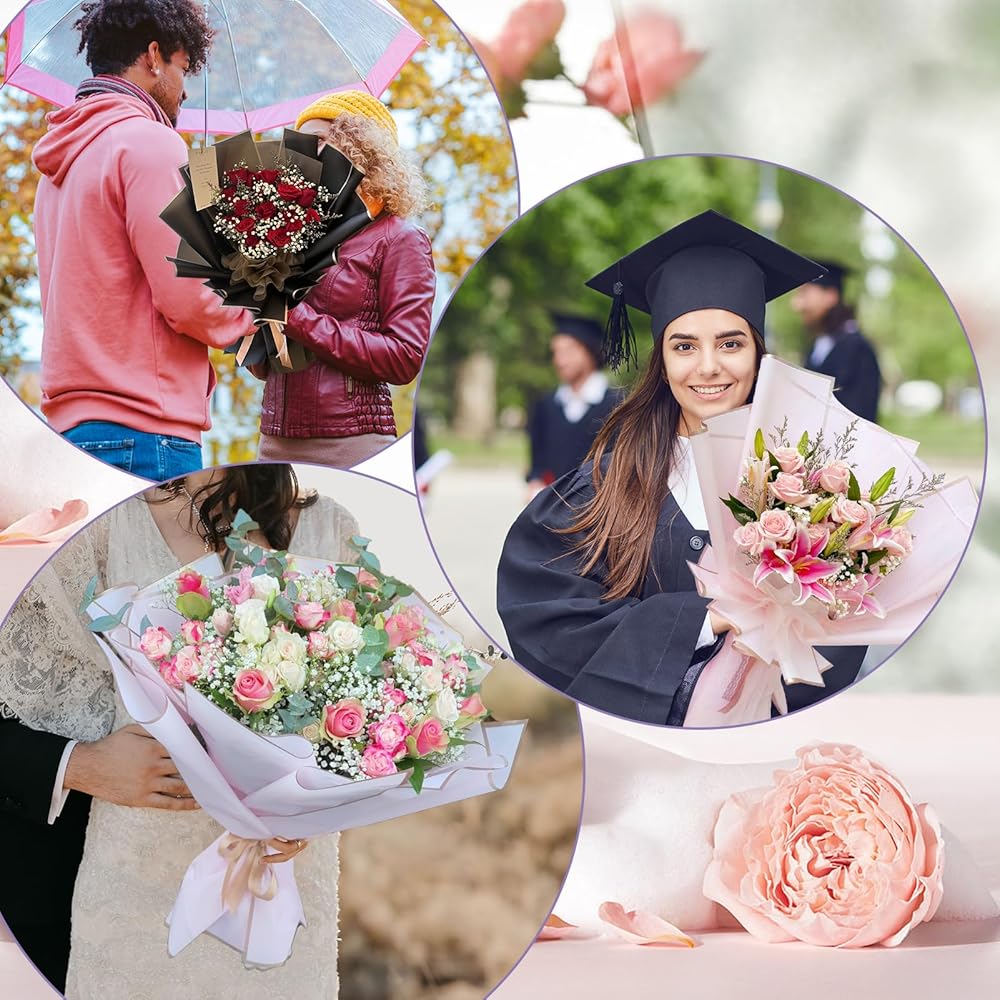 HIGH-QUALITY MATERIAL: Flower wrapping papers are made of watertight plastic film, with a smooth and glossy surface that is not easy to tear. You can easily package flowers without worrying about water getting wet on the packaging paper.