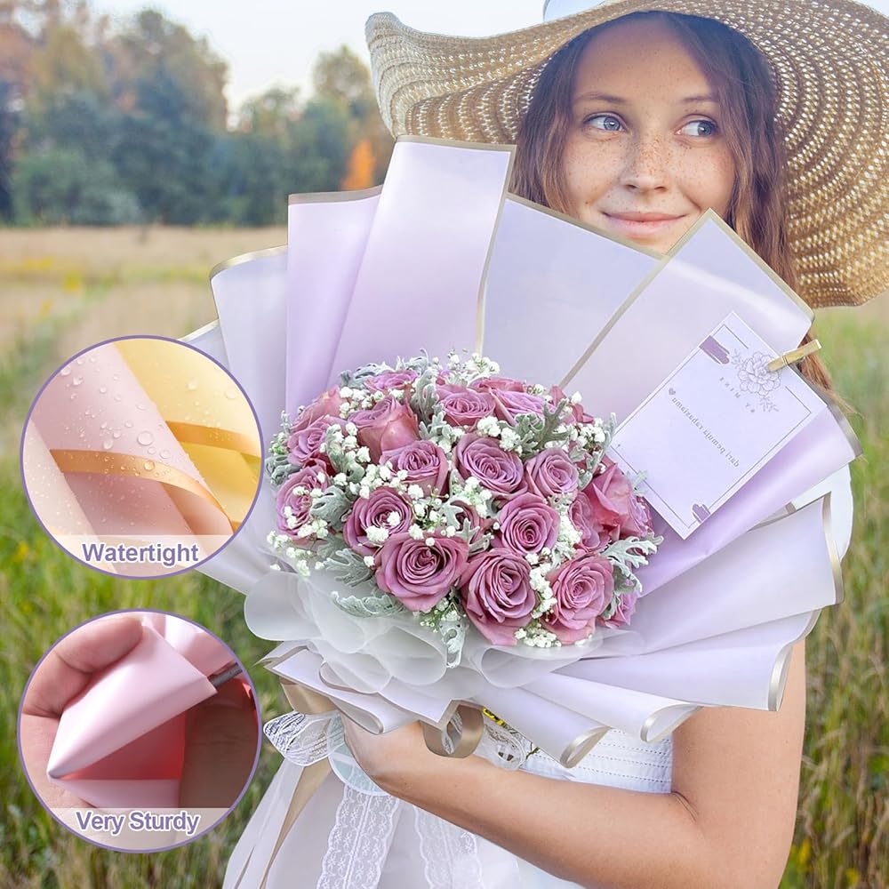 GOLD EDGE WRAPPING PAPERS: The floral packaging paper is designed with a golden edge, making your gift look more special and upscale. Add unique charm and a romantic atmosphere to your bouquet, and leave a deep memory for your friends and lovers.