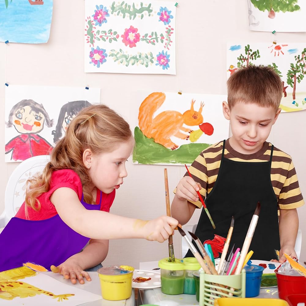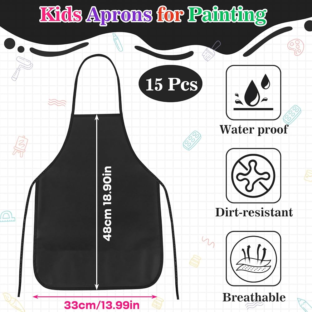 العبوة تشتمل على: 15* مريلة فنية للأطفال، 15 لونًا ساطعًا مختلفًا، كمية كافية تسمح لك باختيار اللون الذي تفضله