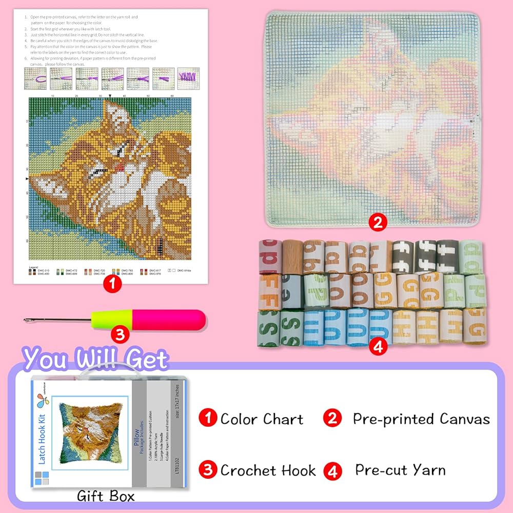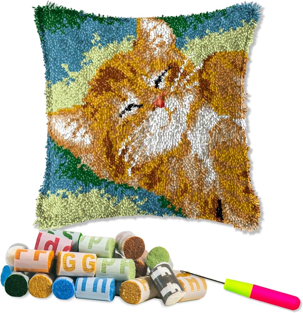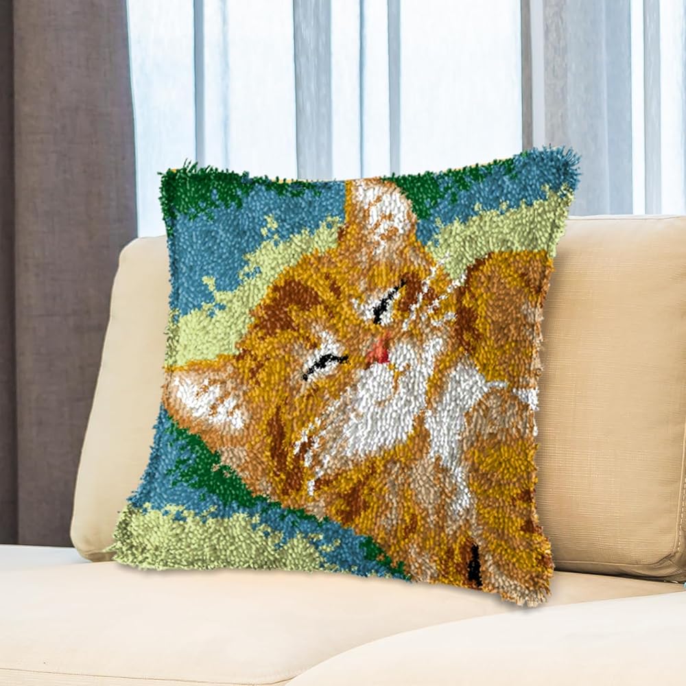 LAPATAIN مزلاج هوك أطقم DIY بها بنفسك رمي غطاء وسادة ، لطيف القط التطريز غطاء الوسادة اليد الحرفية الكروشيه لعائلة كبيرة 17X17 بوصة