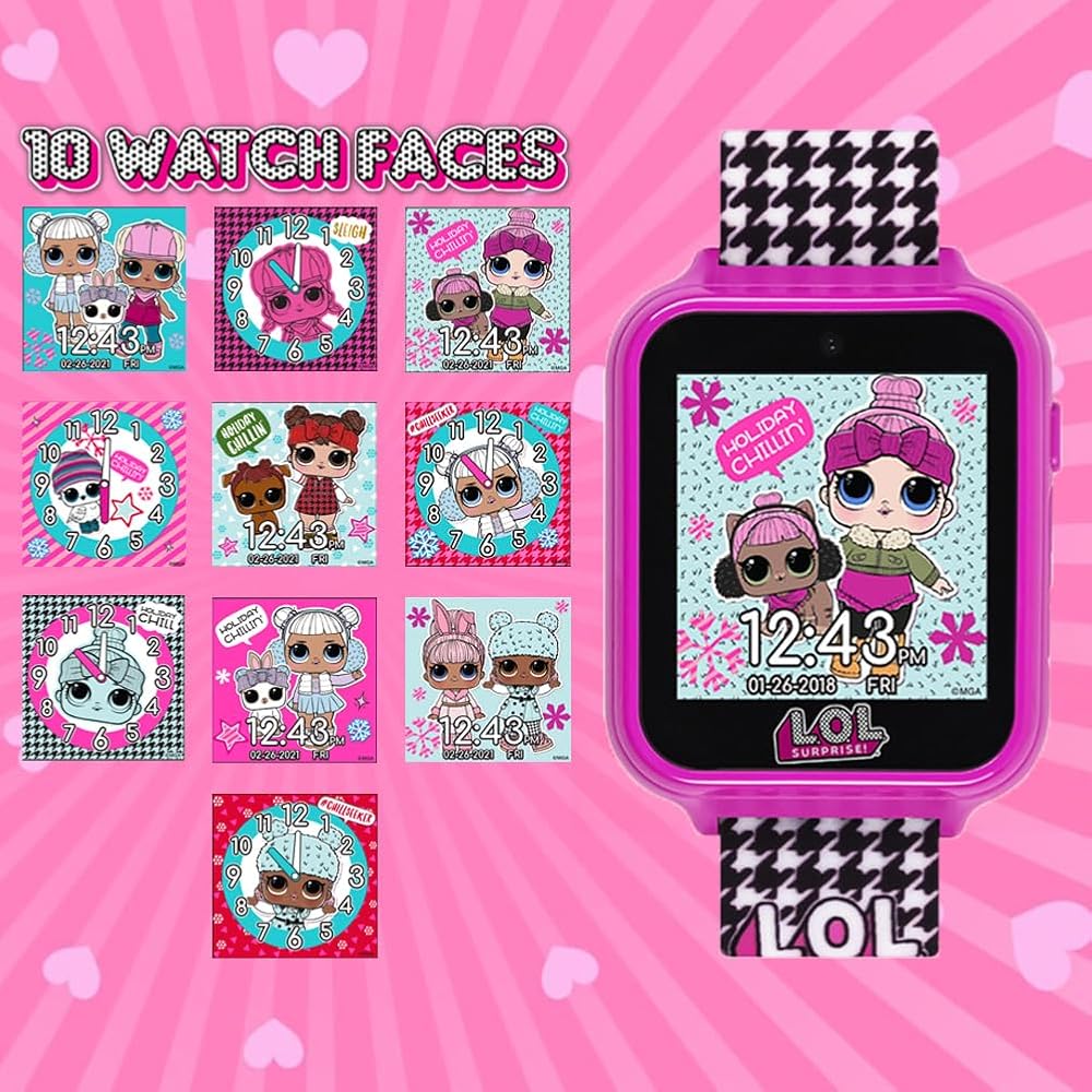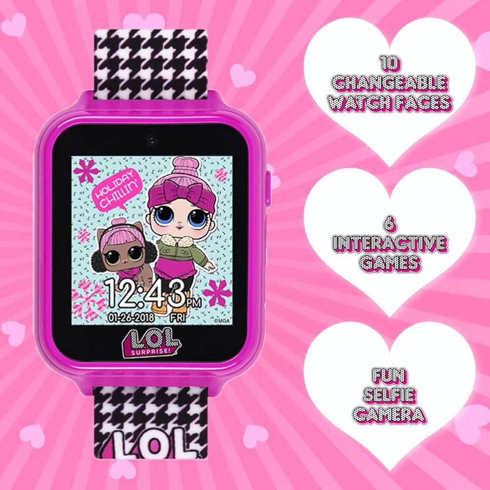 يشتمل جهاز LOL Surprise المخصص للأطفال على كاميرا سيلفي لالتقاط الصور، وعارض ألبوم الصور، ومشغل فيديو، ومسجل صوت، وآلة حاسبة، وساعة منبه، وعداد خطوات، وألعاب متنوعة قابلة للعب، ووجوه ساعة قابلة للتغيير.