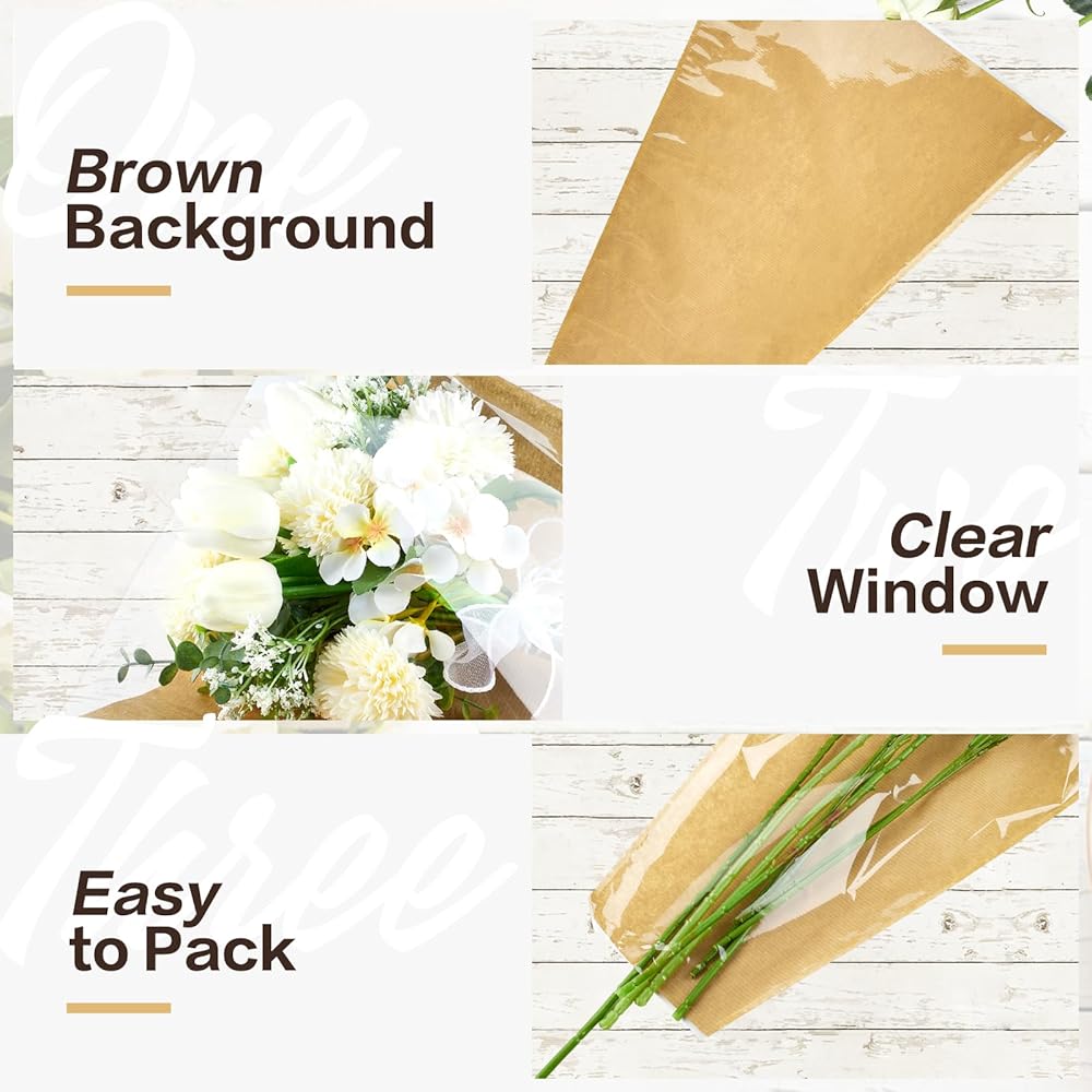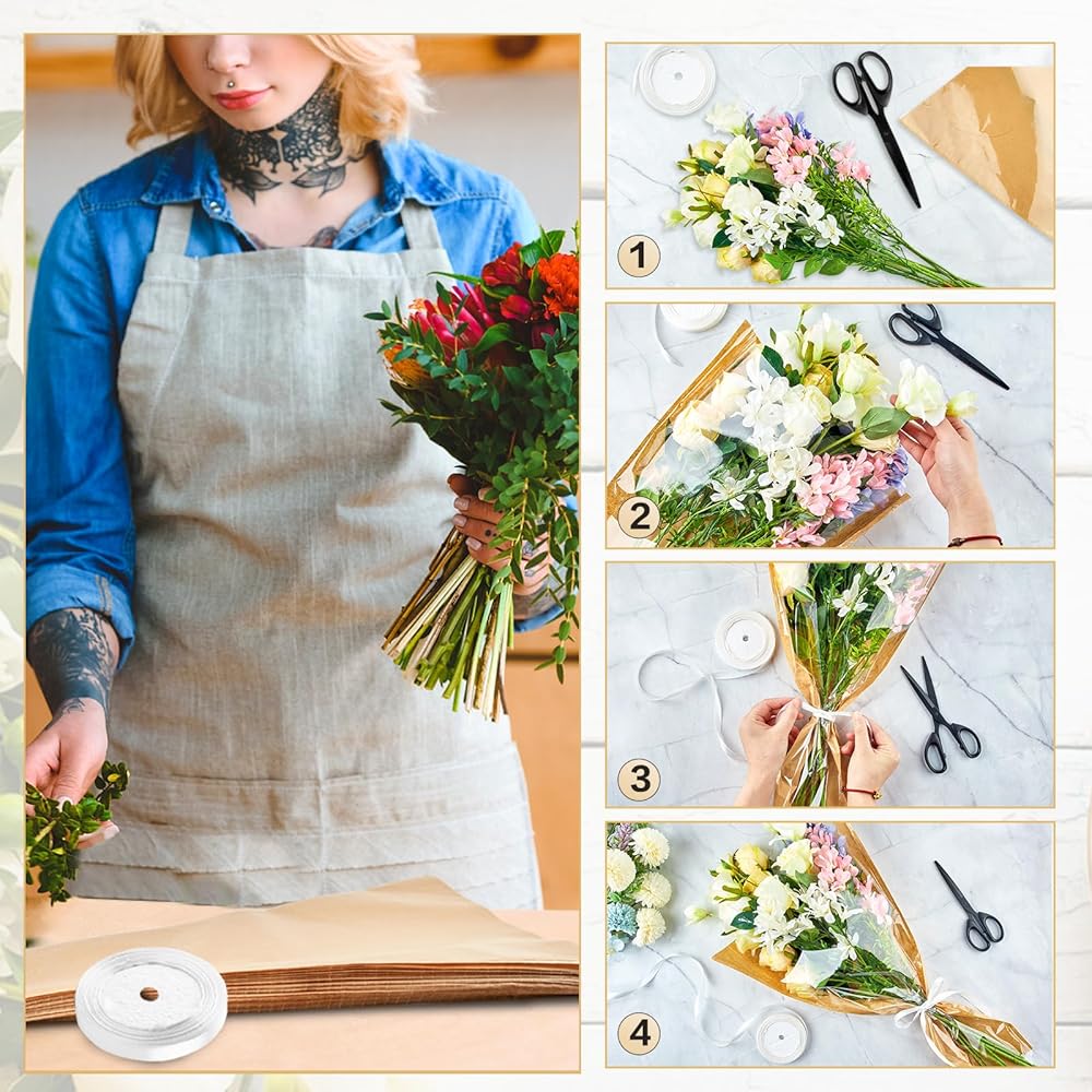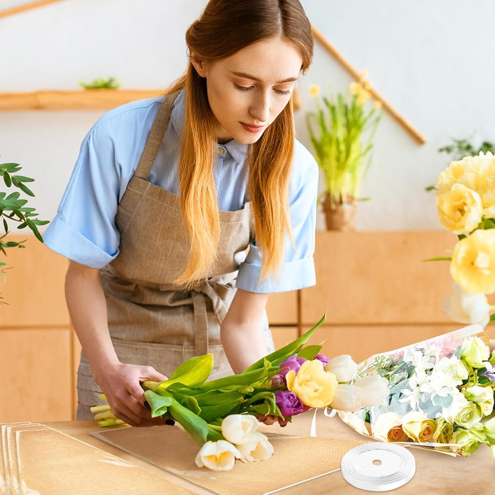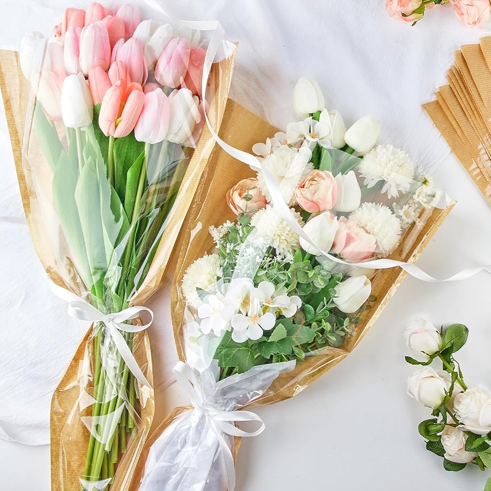 50 قطعة من أكمام الزهور للباقات، ورق تغليف الزهور من ورق الكرافت مع أشرطة، أكياس تغليف الزهور، مستلزمات ترتيب الزهور لحفلات الزفاف، وعيد الحب، وأعياد الميلاد، والعطلات