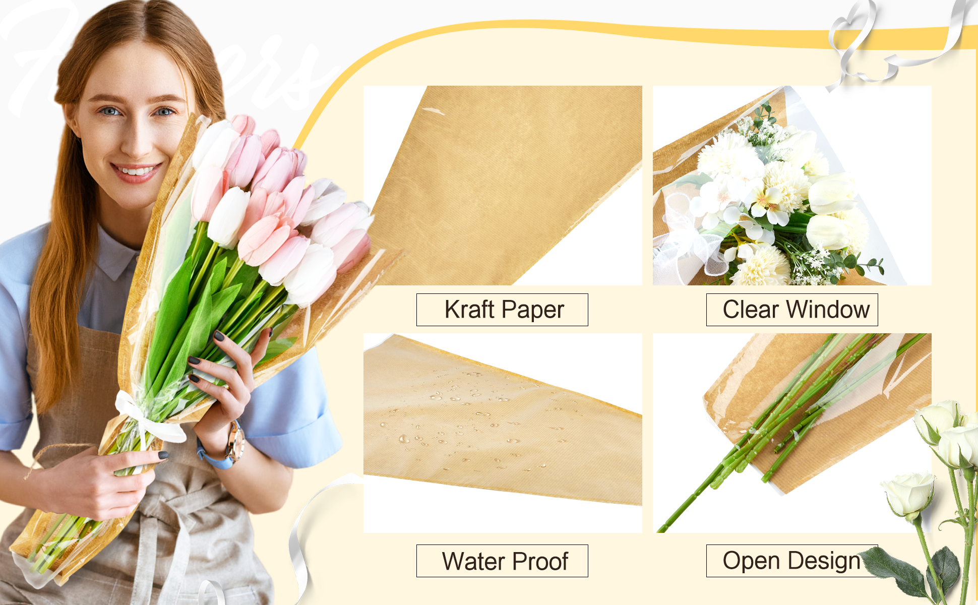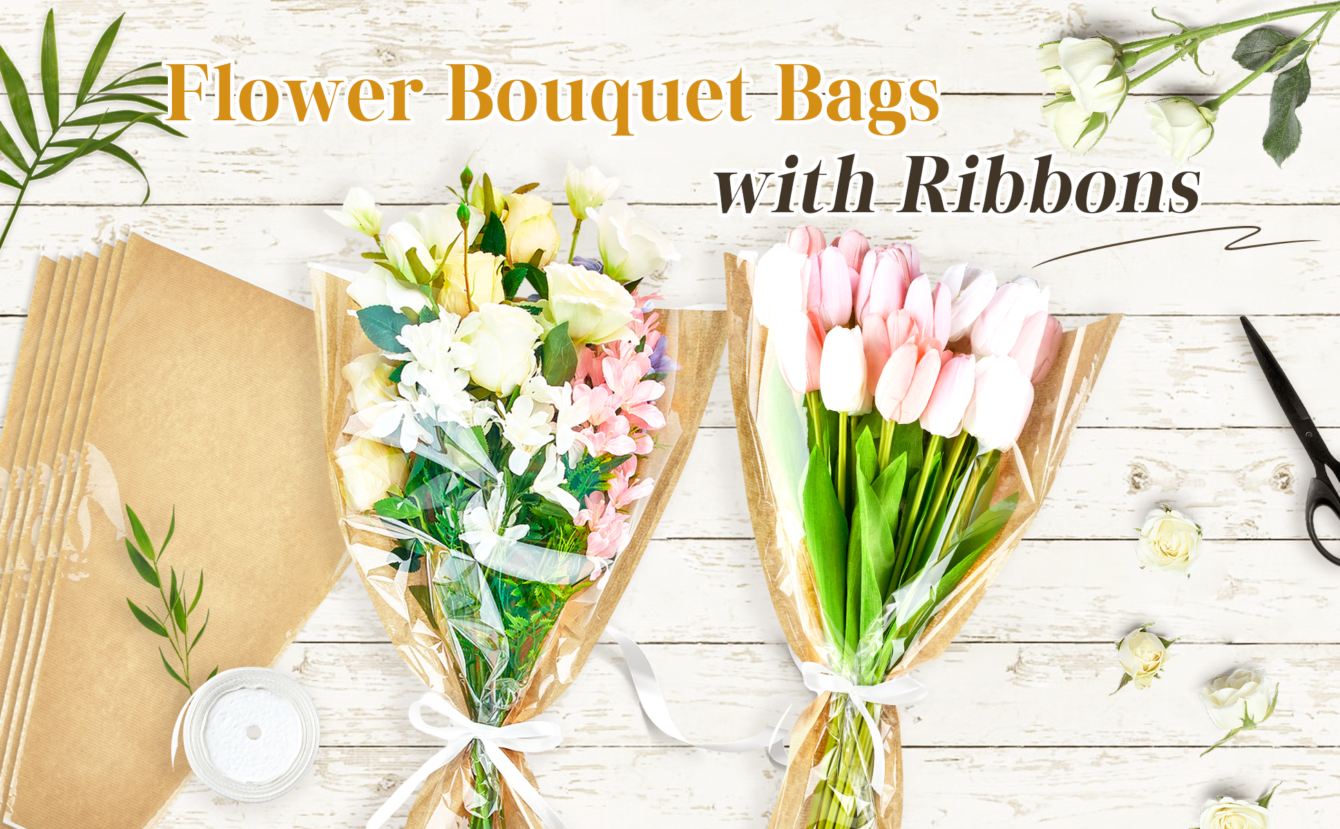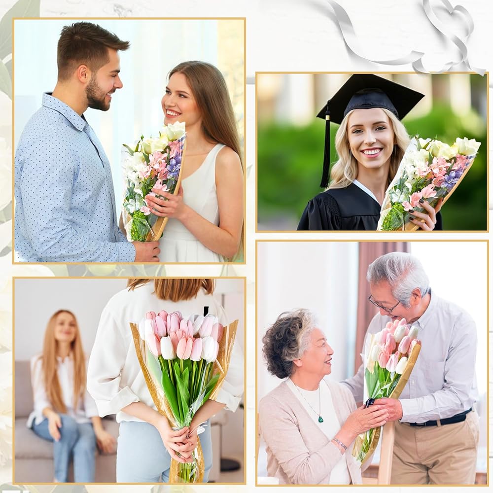 50 قطعة من أكمام الزهور للباقات، ورق تغليف الزهور من ورق الكرافت مع أشرطة، أكياس تغليف الزهور، مستلزمات ترتيب الزهور لحفلات الزفاف، وعيد الحب، وأعياد الميلاد، والعطلات