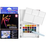 Capturing the moment just got easier with koi water color field sketch kits. This portable watercolor set is perfect to bring along whether you're going to the countryside, relaxing at the beach or walking urban landscapes. The kit is lightweight and affordable. Half pan watercolors, formulated to blend easily and create and endless range of colors. A refillable koi water brush to transport and store water. A small, sleek design that fits into shirt or jacket pockets, perfect for painting onthego. Koi water color field sketch kits have the acmi ap seal of approval. Koi watercolor field sketch sets are recommended for ages 14 & over. Includes a refillable Koi water brush to transport and store water. The water brush technical qualities are polypropylene, transparent barrel and nib holder section, nylon fibers for brush tip, please keep cap and plug away from small children. Set consists of 12 colors.