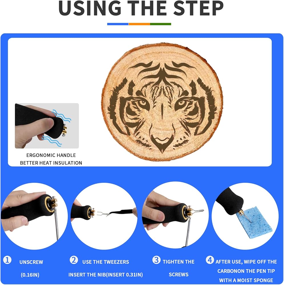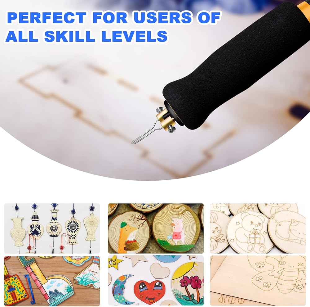 مقبض مريح للاستخدام طويل الأمد: تتميز مكواة اللحام المقاومة للانزلاق والمقاومة للحرارة بصلابة جيدة وأداء قوي للعزل الحراري والسلامة والموثوقية وتزن 33 غرام فقط، مما يوفر تجربة استخدام سهلة ومريحة. يمكن لمجموعة حرق الخشب الاحترافية أن تصنع أعمال بيروغرافية رائعة.