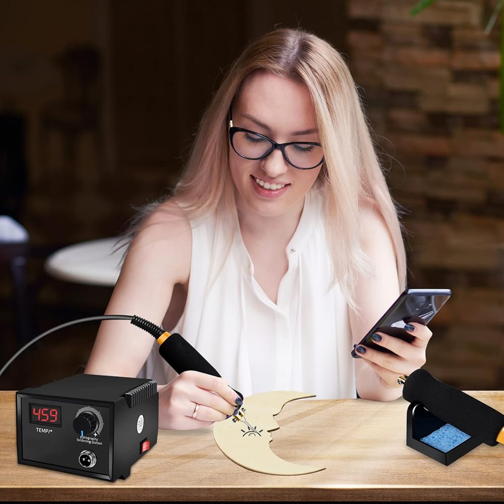 درجة حرارة قابلة للتعديل رقميًا: تتيح تقنية التسخين 60 واط لمجموعة حرق الخشب التسخين بسرعة في 20 ثانية فقط، وتتميز بأنها موفرة للطاقة وصديقة للبيئة. نطاق درجة الحرارة القابل للتعديل من 25 درجة مئوية إلى 700 درجة مئوية يسمح لك بالتحكم في حرارة كل مشروع. لا تستخدمه لفترة طويلة عندما تكون درجة الحرارة مرتفعة. (سيتحول المطالبة إلى اللون الأحمر والساطع)