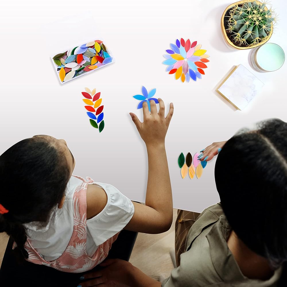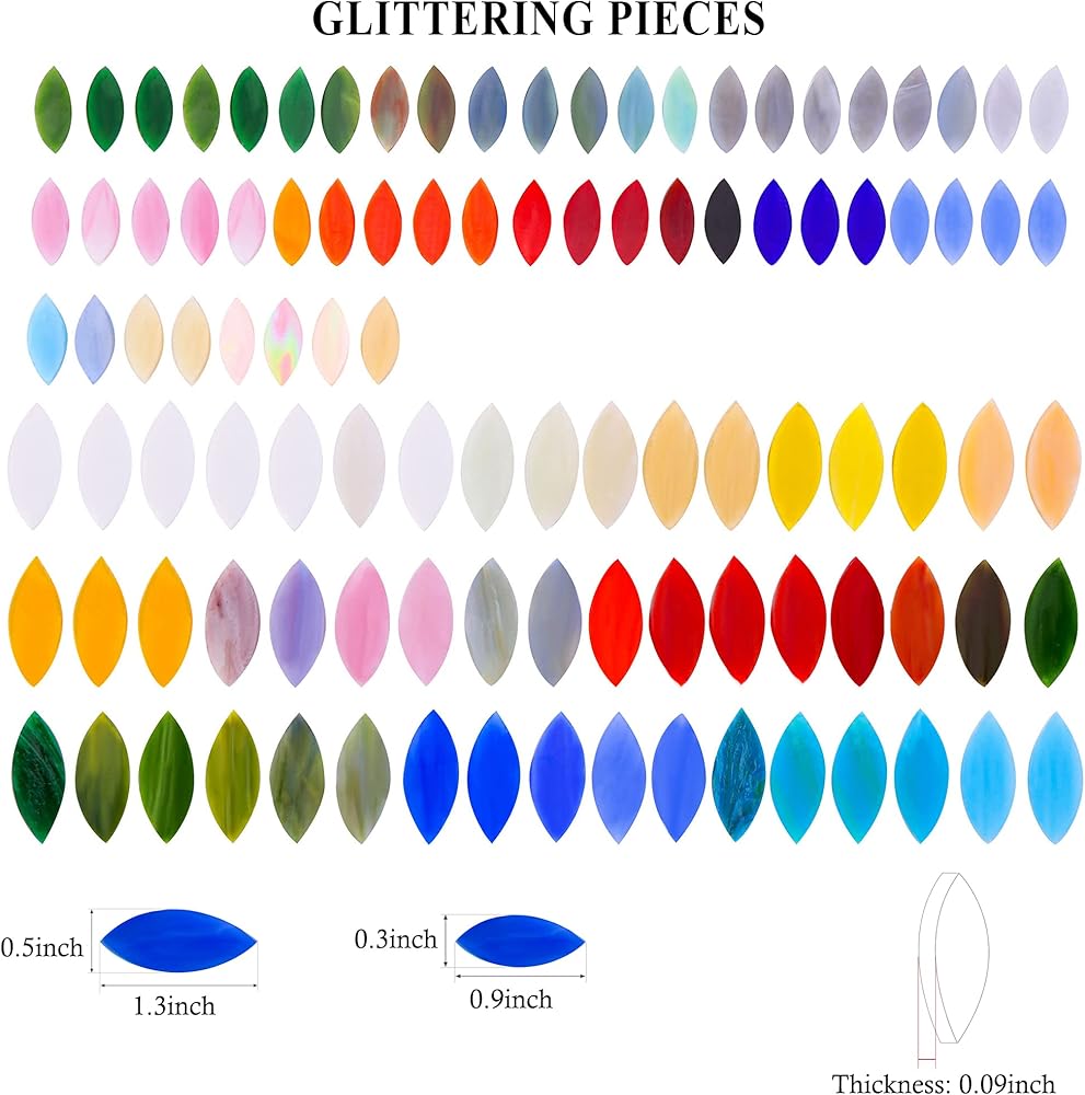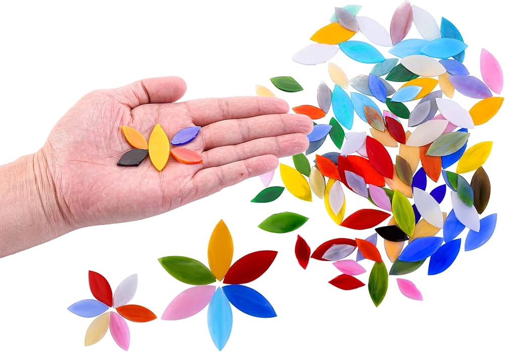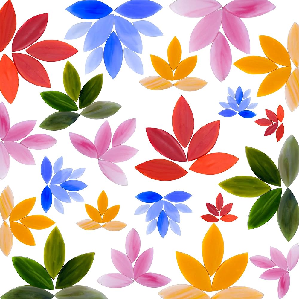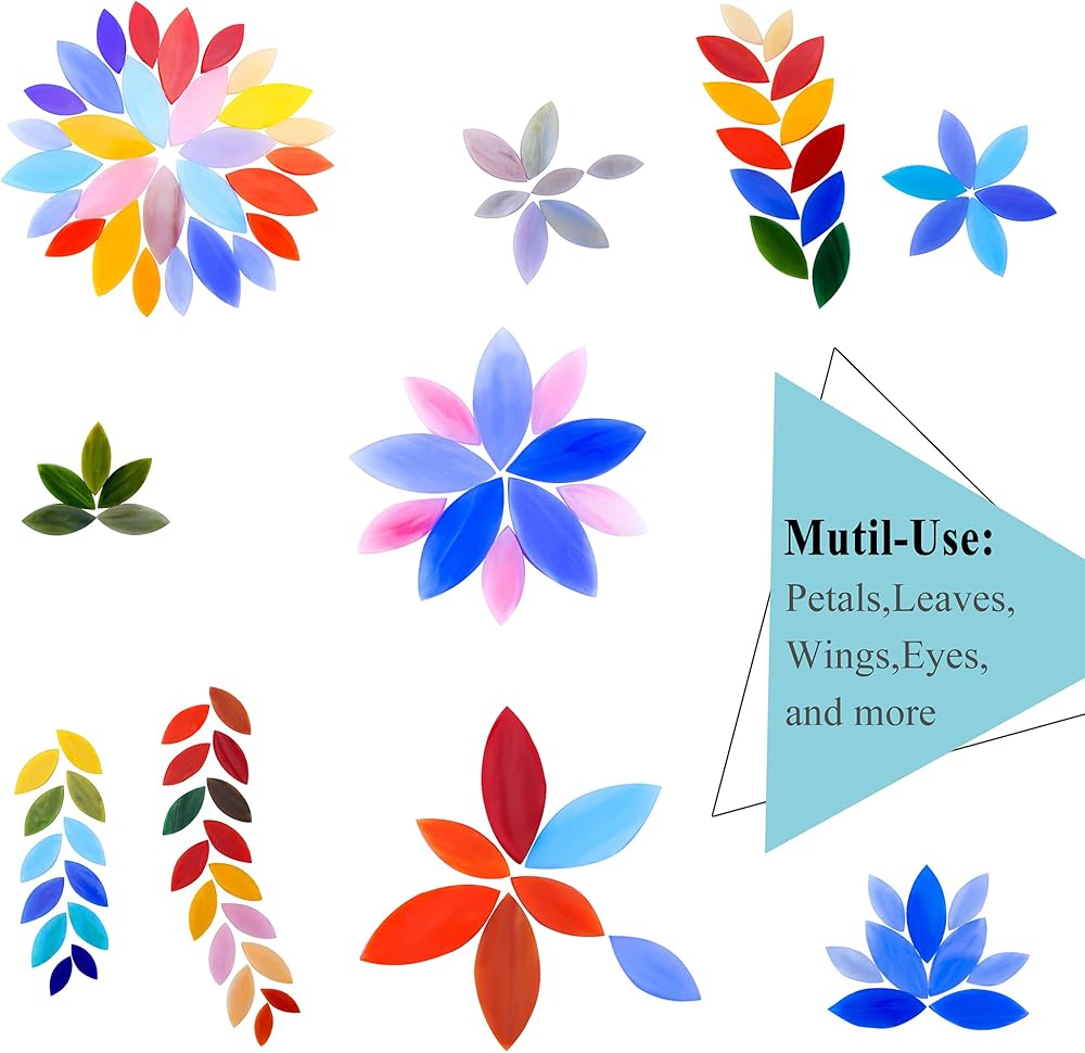 【Quality & Harmless Materials】. Made of sturdy and nontoxic glass material. With smooth surface, these colorful petal mosaic tiles add a great fun and interest to a handicraft mosaic project.
