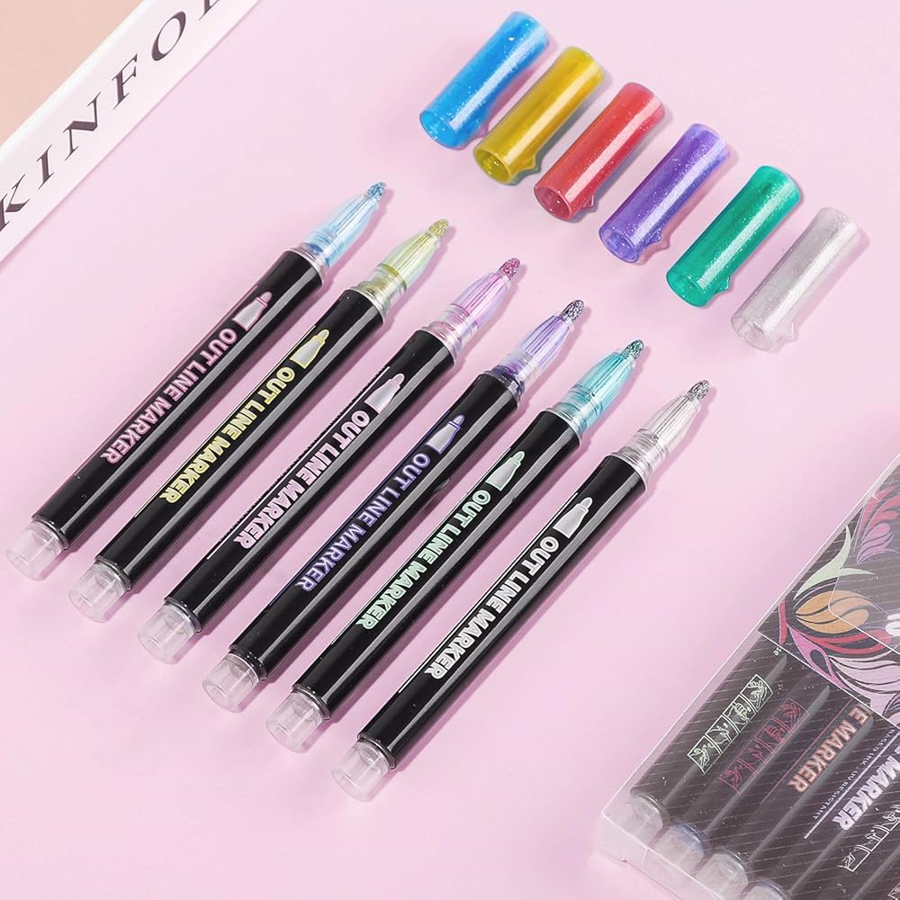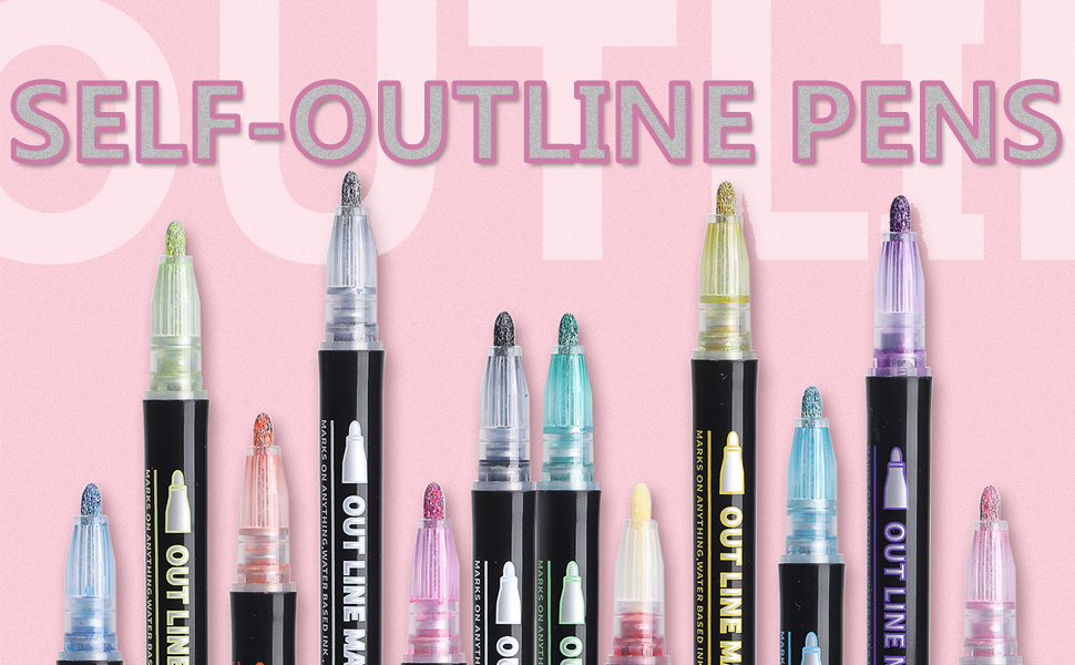• تجربة جديدة: هذه الأقلام ذاتية التحديد تكتب باللون الفضي المعدني الزاهي محاطة بحواف ملونة. تقنية فريدة تنتج خطوط عريضة لك تلقائيًا لخلق تأثير جميل مزدوج اللون.