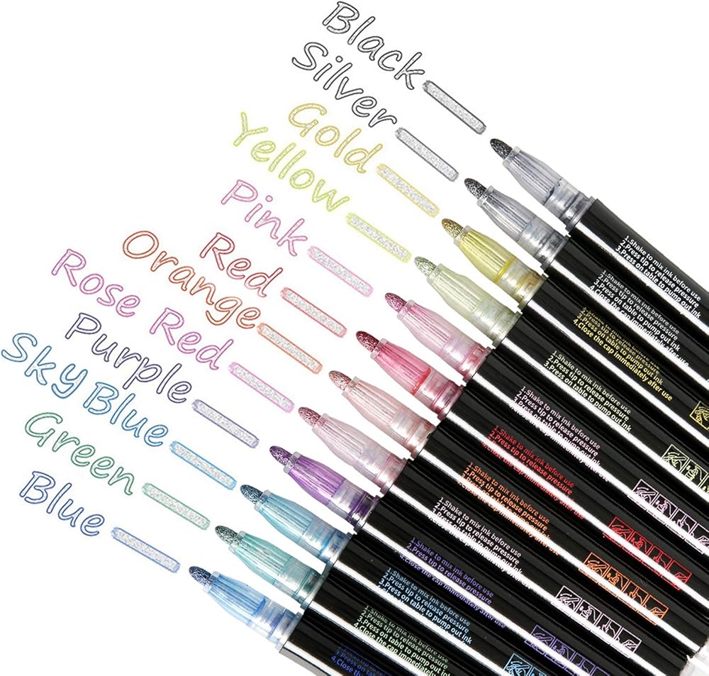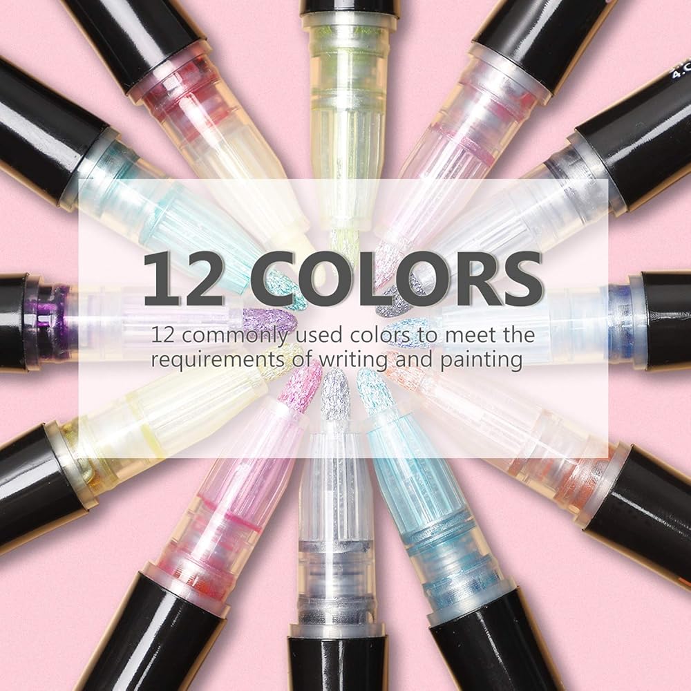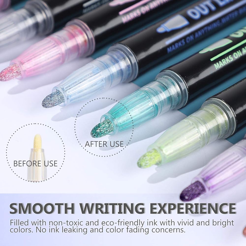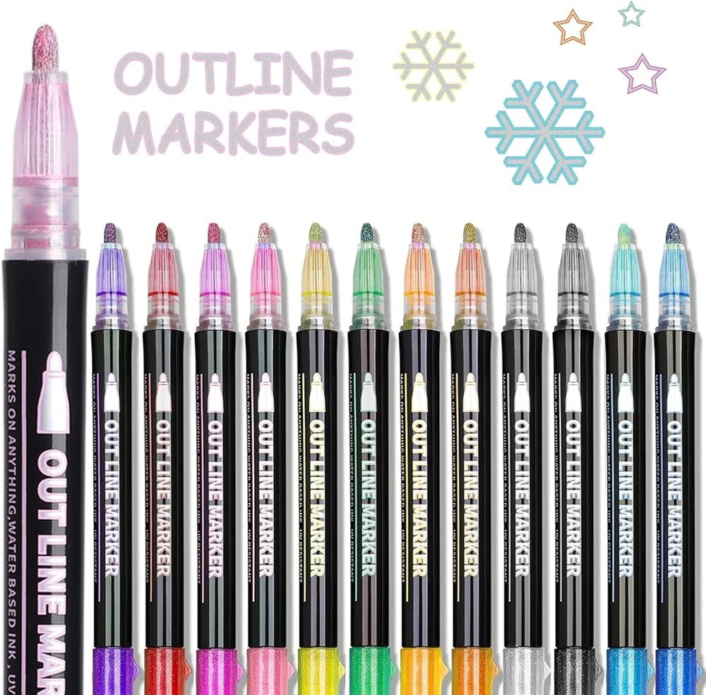 أقلام تحديد معدنية ذاتية الخط، 12 قلم رسم مخطط مزدوج بخط مزدوج لوضع الرسم وبطاقات الهدايا