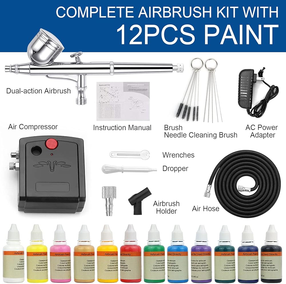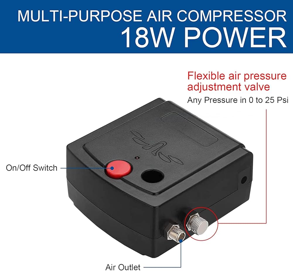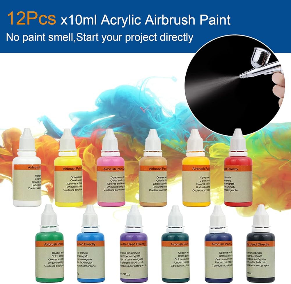 يمكنك استخدام مجموعة نظام فرشاة الهواء هذه لبدء عمل البخاخة على الفور. يتضمن المنتج 12 قطعة من طلاء البخاخة سعة 10 مل، ضاغط هواء، مصدر طاقة، فرشاة تغذية الجاذبية، خرطوم هواء، مجموعة تنظيف البخاخة. الملحقات الوفيرة يمكن أن تلبي متطلباتك بالكامل. شراء مجموعة البخاخة الكاملة لمرة واحدة، لا حاجة لإنفاق المزيد من الوقت والمال لشراء الملحقات والدهانات الأخرى بشكل منفصل، و تجنب إنفاق الكثير من الوقت لتصحيح أخطاء البخاخة والطلاء.