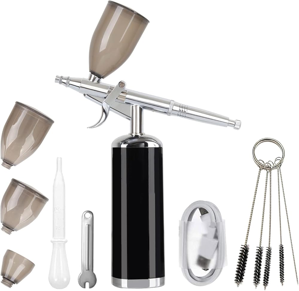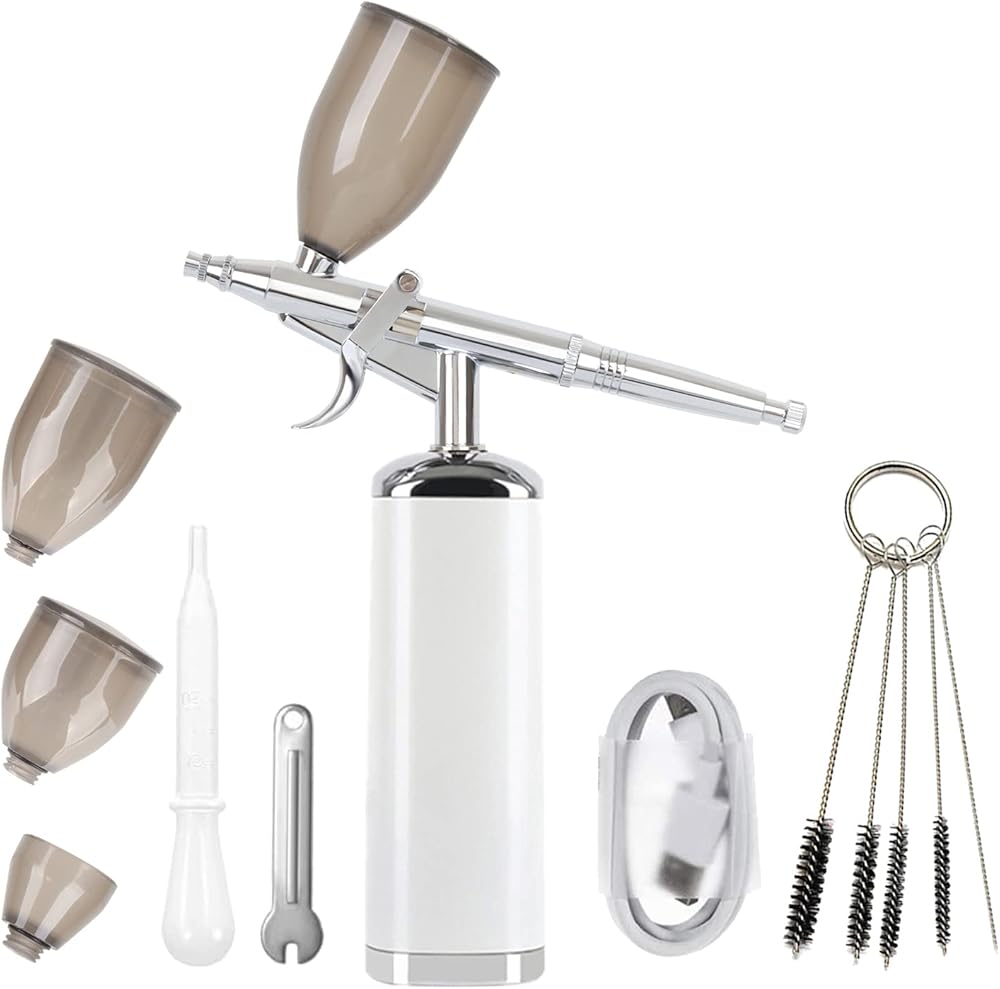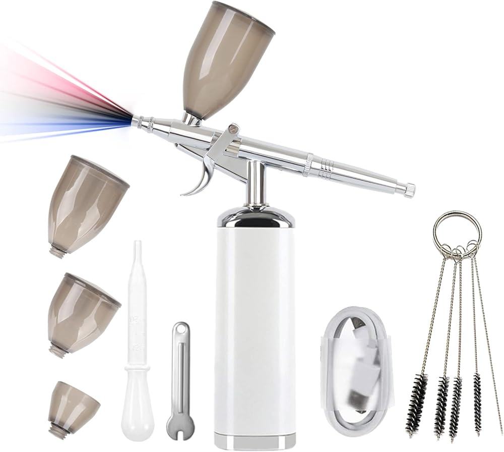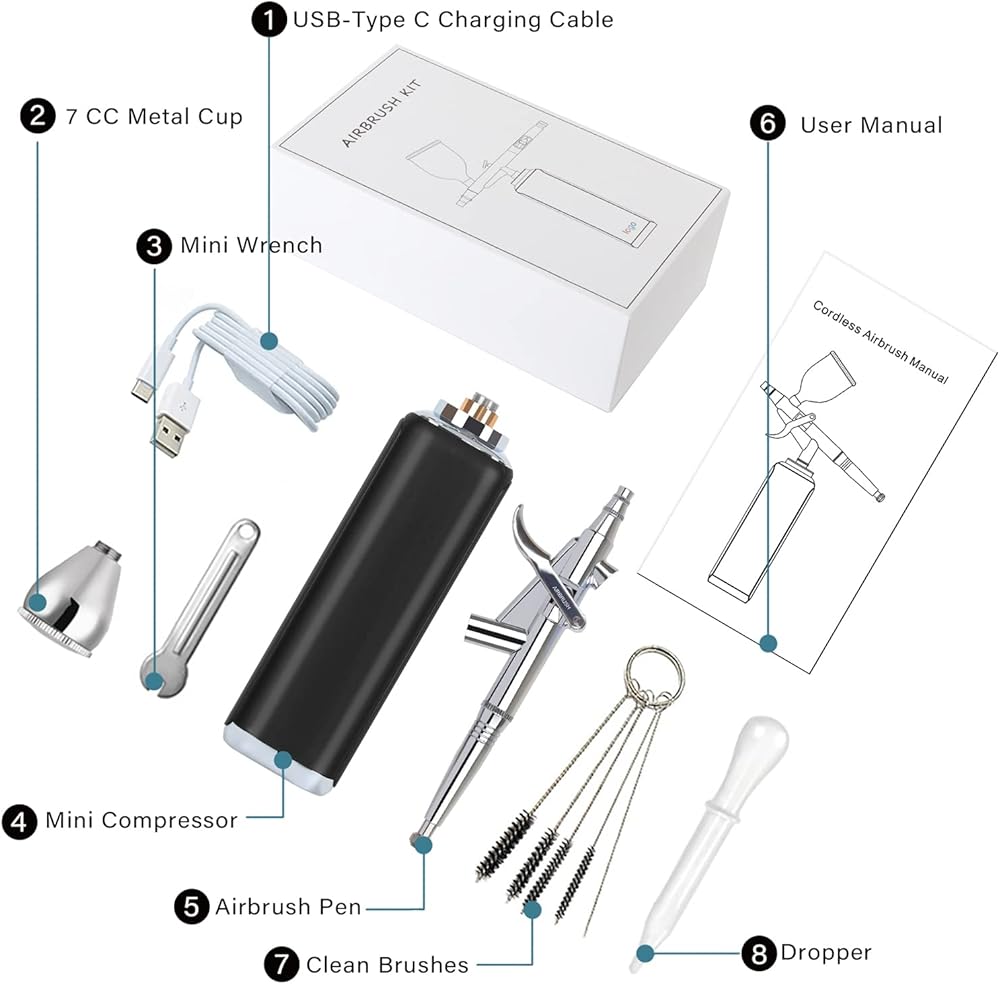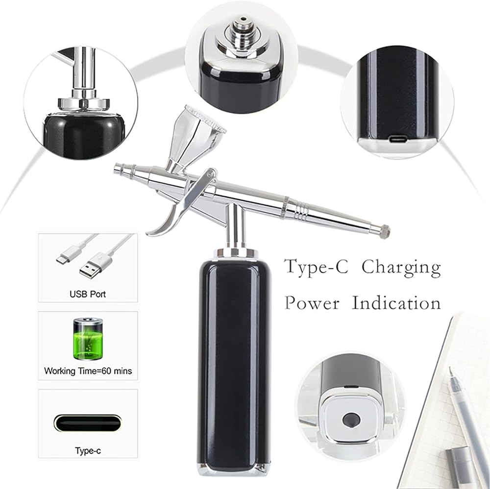 🏝️محمولة ومريحة🏝️ مع مضخة البخاخة الصغيرة القابلة لإعادة الشحن المزودة بالبطارية، يمكنك أخذها إلى الخارج بسهولة لاستخدامها متعدد الأغراض، ورسم البخاخة للفنانين، ونماذج فرشاة الهواء، وأساسات البخاخة للمكياج، وأظافر البخاخة، وزينة الكعك البخاخة، واستنسل البخاخة. والبخاخة الوشم المؤقت والرسوم التوضيحية والهوايات وبخاخة الحلاقة وما إلى ذلك.
